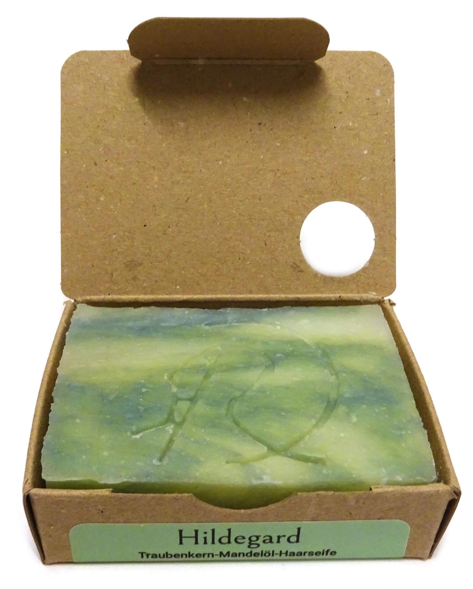 Dies ist eine Haarseife auf Babassuöl-Basis mit einem hohen Mandelöl-Anteil. Sie verströmt einen angenehmen und dezenten Duft, überfettet mit Traubenkernöl. Hildegard ist eine in liebevoller Handarbeit gesiedete Pflanzenölseife, die strapazierte Haare perfekt pflegt und sich als Wohltat für Haare und Kopfhaut erweist. Das Babassuöl als Basis sorgt für eine üppige Schaumbildung und ist bei einer empfindlichen Kopfhaut gut verträglich. Das Produkt sollte für eine größtmögliche Ergiebigkeit und ein optimales Wascherlebnis nach jeder Verwendung trocknen können.