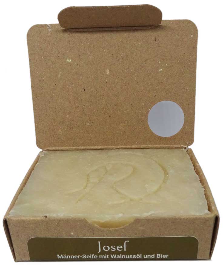 Diese Männer-Seife wird mit Kokosnuss- und Walnussöl und nährstoffreichem Bier hergestellt und ist ideal für Haut und Haare. Josef ist eine in liebevoller Handarbeit gesiedete Pflanzenölseife, die vielseitig einsetzbar ist. Als schaumbildende Öle enthält sie sowohl Babassu- als auch Kokosöl. Mit ihrer hohen Reinigungskraft ist diese Seife auch bei hartnäckigem Schmutz einsetzbar. Dank des nährstoffreichen Bieres eignet sich diese Seife auch wunderbar zur Reinigung und Pflege der Haupt- und Barthaare. Der Duft ist dezent holzig, herb mit einem abrundenden Hauch von Jasmin und Zimt. Die Seife ist frei von zugesetzten Farbpigmenten und diese sollte für größtmögliche Ergiebigkeit und ein optimales Wascherlebnis nach jeder Verwendung trocknen können.