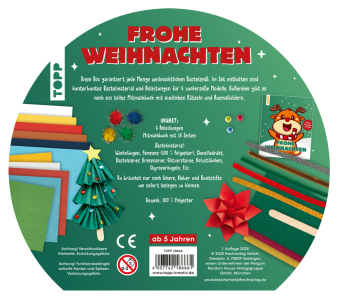 Einfach zum Verlieben! Diese Bastelbox bringt die Augen an Weihnachten zum Leuchten. Mit bunten Bastelmaterialien und kreativen Anleitungen entstehen sechs zuckersüße Bastelprojekte - perfekt zum Dekorieren, Verschenken oder Spielen. Das Mitmachbuch sorgt mit lustigen Rätseln und Ausmalbildern für noch mehr weihnachtlichen Spaß. Dein Rundum-Set für kreative Weihnachtsmomente!
