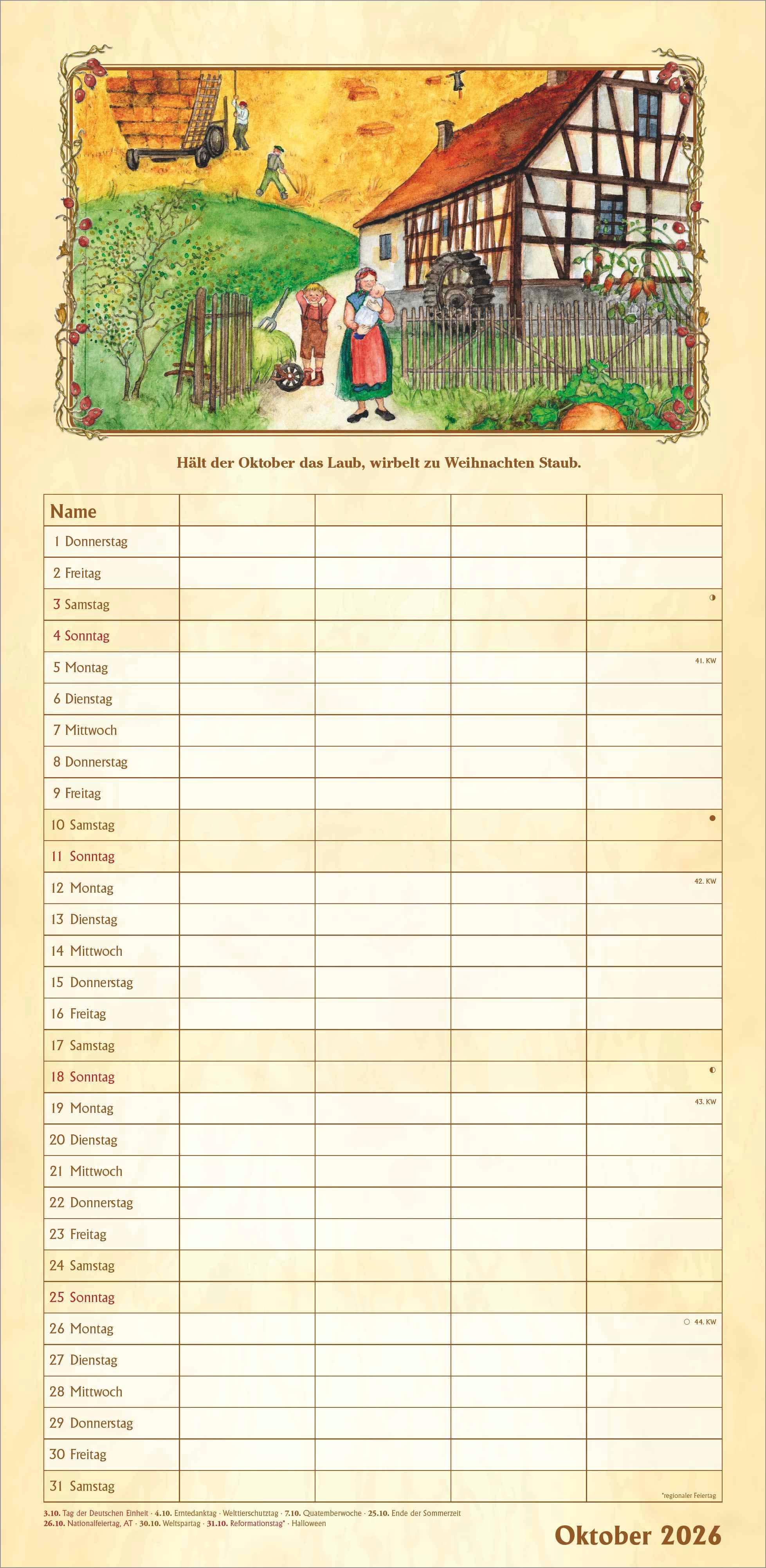 - Familienfreundliches Layout: 4 Spalten für die übersichtliche Organisation von Terminen