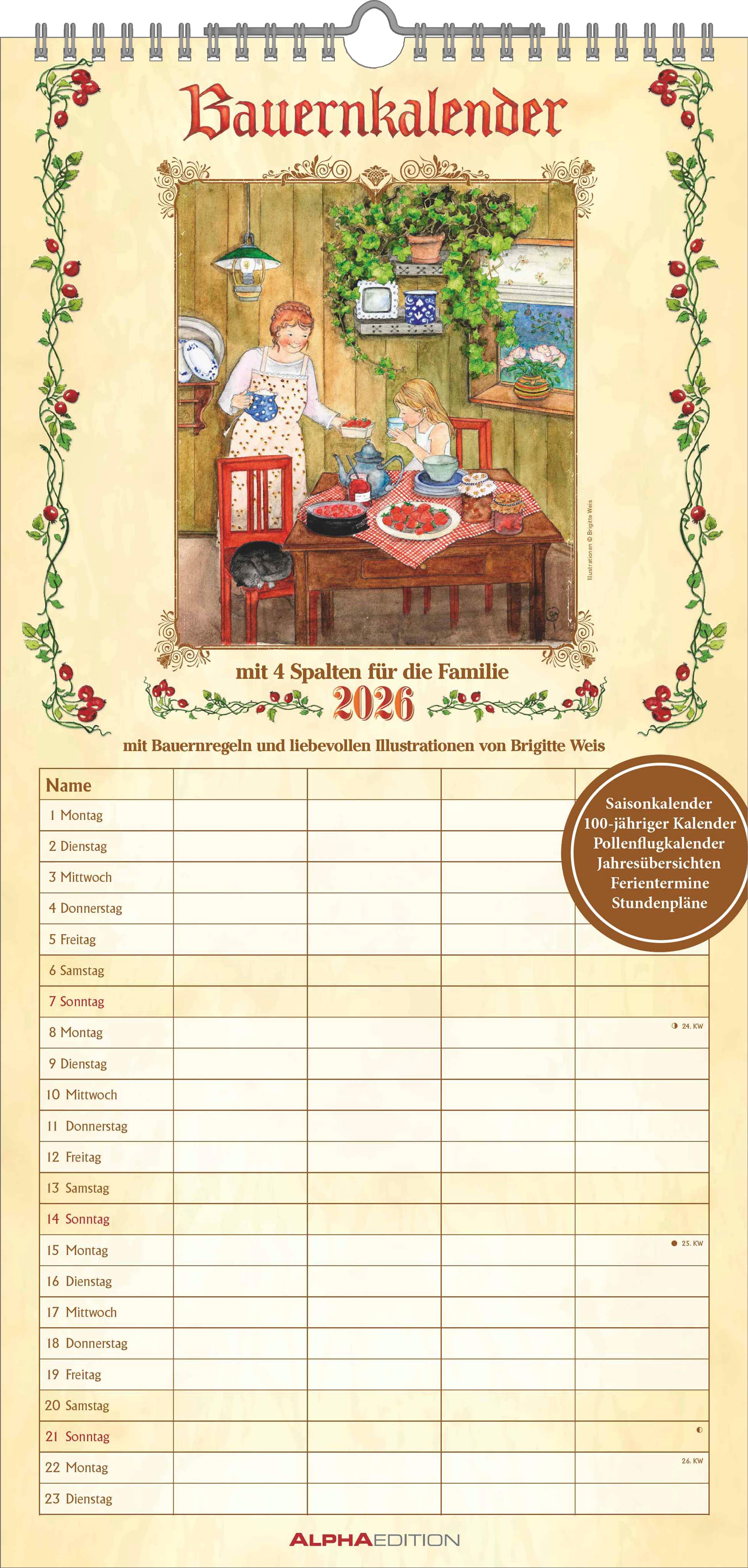 Der Bauernkalender Familienplaner 2026 ist die perfekte Kombination aus funktionaler Terminplanung und gelebter Tradition – ein praktischer und inspirierender Begleiter für das ganze Jahr.