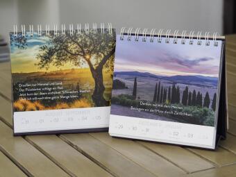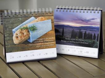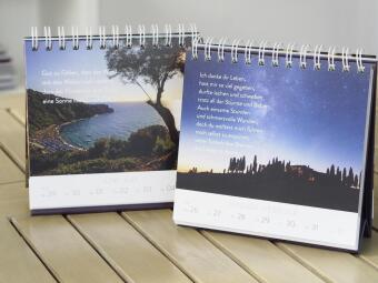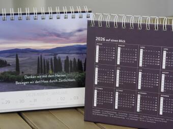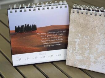 Stabiler Aufsteller aus Karton, Kalender-Format: 17 x 15,5 cm, große Spiralbindung, für ein leichtes Umdrehen der Kalenderblätter