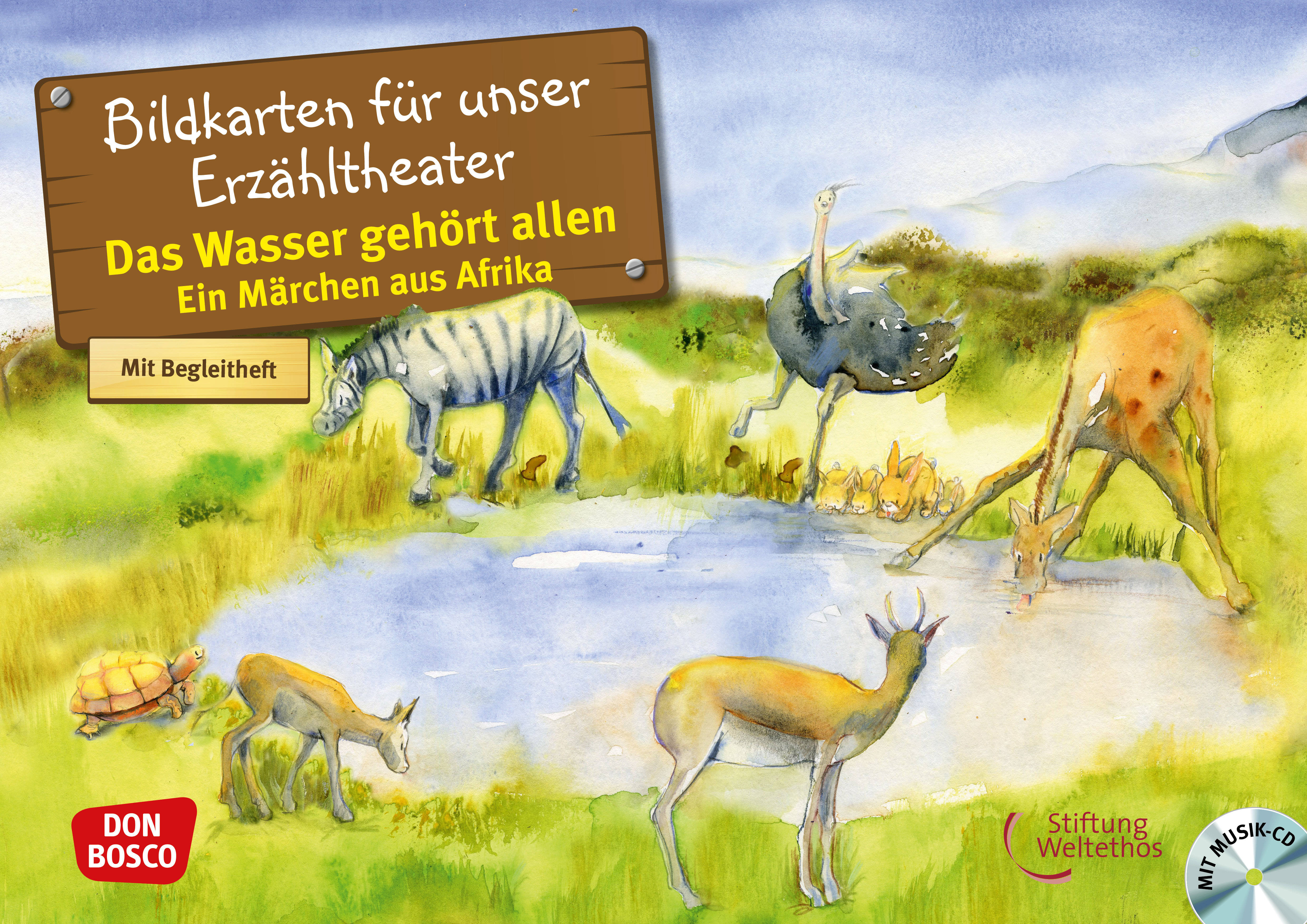 Seit Tagen finden die Tiere der Savanne nichts mehr zu trinken. Es gibt nur noch ein einziges Wasserloch, aber der mächtige Elefant verjagt sie alle von dort. Als er selbst einmal fort muss, beauftragt er eine Schildkröte, das Wasserloch zu bewachen. Und auch die Schildkröte schickt alle Tiere fort. Ob Giraffe, Zebra oder Straußenvogel - alle gehorchen der Schildkröte und dem Elefanten. Aber was passiert, wenn trotzdem einer aus dem Wasserloch trinkt? Diese zwölfteilige Bildfolge für das Erzähltheater Kamishibai thematisiert in der Form eines Märchens Fragen des Zusammenlebens, der Solidarität und der Gerechtigkeit. Das Begleitheft für ErzieherInnen enthält Fragen zur Gestaltung von Gesprächsanlässen, vertiefende Praxisideen und eine CD der Musikgruppe KUNTU. Das Material eignet sich sowohl für kurze Erzählrunden als auch für größer angelegte Projekte. In Kooperation mit der Stiftung Weltethos.