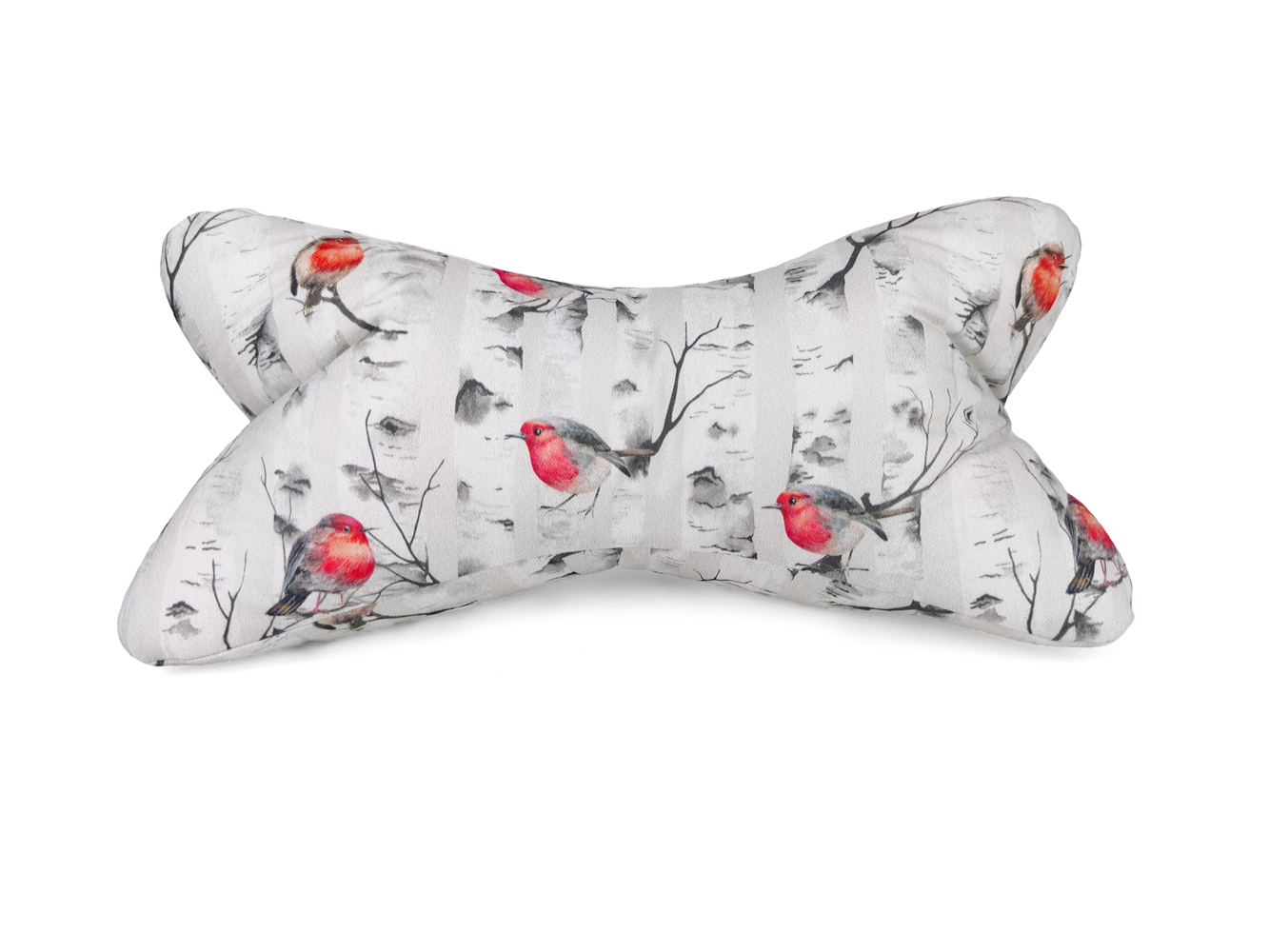 Egal wo, ob im Bett, auf der Couch oder auf dem Sessel. Der Leseknochen mit den vielen kleinen Rotkehlchen sorgt überall für ein angenehmes Wohlbefinden.