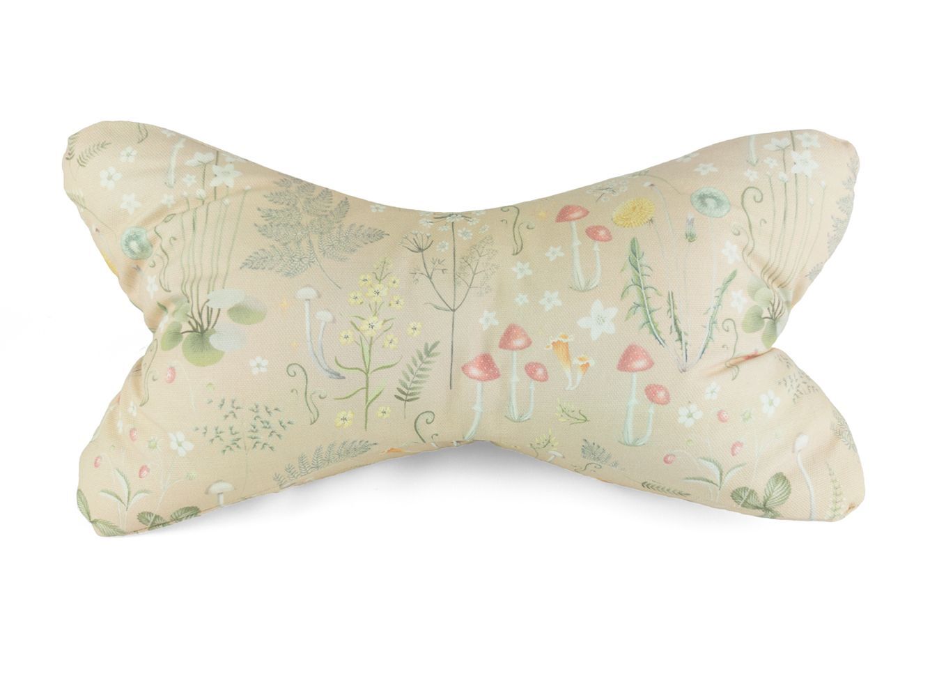 Entdecke die niedliche Pilzwelt auf dem Leseknochen, in der kleine Pilze, Gräser, Farne und Löwenzahn auf einem zarten Hintergrund die Schönheit und Harmonie des Waldes zum Leben erwecken. Der hochwertige Leseknochen überzeugt mit seiner ausgezeichneten Qualität und seiner angenehm weichen Oberfläche. Das zarte Naturmuster in einem hellen Beige fügt sich prima in die Leseecke des Wohnzimmers ein, aber auch in die gemütliche Gartenecke. Der Leseknochen dient sowohl als Nackenkissen und Buchstütze auf der Gartenliege als auch auf dem Sofa. Für eine angenehme und bequeme Sitzhaltung sorgt er als Rückenkissen. Auch beim Lesen in Bauchlage, mit dem Buch vor einem, erweist sich der Leseknochen als perfekte Unterstützung. Mit seinem strapazierfähigen Bezug aus Baumwolle ist der hochwertige Leseknochen bestens geeignet für den Einsatz im Garten oder bei einem Picknick im Grünen. Vor einem Sommergewitter sollte er dennoch geschützt werden. Die Füllung besteht aus silikonisierten Polyesterh