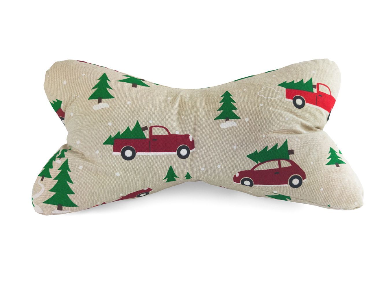 Auf dem Weg zum Weihnachtsfest düsen die roten Weihnachtsautos des Leseknochen durch eine malerische Schneelandschaft, beladen mit Tannenbäumen und hübschen Geschenken. Erwecke mit diesem Accessoire die traditionelle Vorfreude auf das Fest und genieße gemütliche Lesestunden in festlicher Atmosphäre. Der hochwertige Leseknochen überzeugt mit seiner ausgezeichneten Qualität und seiner angenehm weichen Oberfläche. Das traditionelle Weihnachtsmuster fügt sich prima in die Leseecke des Wohnzimmers ein, aber auch in die gemütliche Gartenecke. Der Leseknochen dient sowohl als Nackenkissen und Buchstütze auf der Gartenliege als auch auf dem Sofa. Für eine angenehme und bequeme Sitzhaltung sorgt er als Rückenkissen. Auch beim Lesen in Bauchlage, mit dem Buch vor einem, erweist sich der Leseknochen als perfekte Unterstützung. Mit seinem strapazierfähigen Bezug aus einer Baumwoll-Polyestermischung ist der hochwertige Leseknochen bestens geeignet für den Einsatz im Garten oder bei einem Pickn
