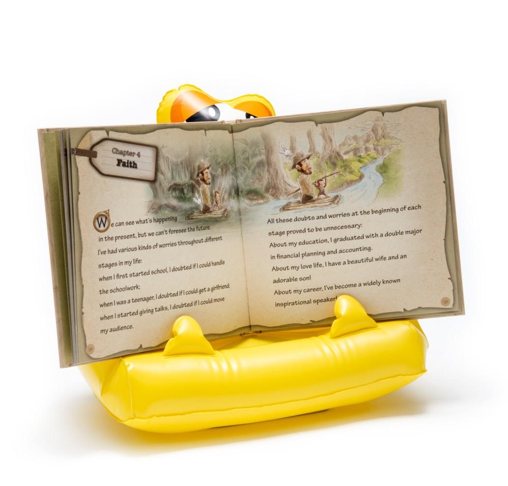 Bookmonster Air Gelb | Sammy | Aufblasbares Lesekissen für Bücher und Tablets | Buchständer | Tablethalter | Lesehillfe