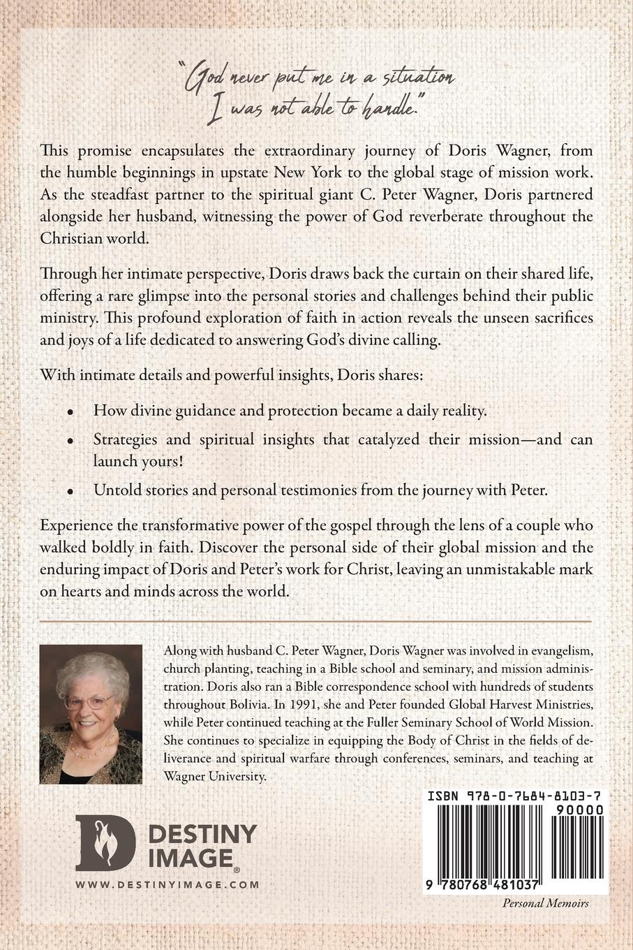 "God never put me in a situation I was not able to handle."This promise encapsulates the extraordinary journey of Doris Wagner, from the humble beginnings in upstate New York to the global stage of mission work. As the steadfast partner to the spiritual giant C. Peter Wagner, Doris partnered alongside her husband, witnessing the power of God reverberate throughout the Christian world.Through her intimate perspective, Doris draws back the curtain on their shared life, offering a rare glimpse into the personal stories and challenges behind their public ministry. This profound exploration of faith in action reveals the unseen sacrifices and joys of a life dedicated to answering God's divine calling.With intimate details and powerful insights, Doris shares:How divine guidance and protection became a daily reality.Strategies and spiritual insights that catalyzed their mission-and can launch yours!Untold stories and personal testimonies from the journey with Peter.Experience the transformative power of the gospel through the lens of a couple who walked boldly in faith. Discover the personal side of their global mission and the enduring impact of Doris and Peter's work for Christ, leaving an unmistakable mark on hearts and minds across the world.