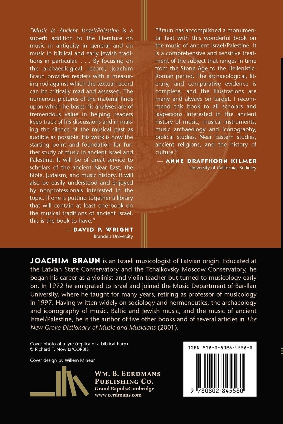 This book contains the first study of the musical culture of ancient Israel/Palestine based primarily on the archaeological record. Noted musicologist Joachim Braun explores the music of the Holy Land region of the Middle East, tracing its form and development from its beginning in the Stone Age to the fourth century A.D. SynopsisAn Israeli musicologist (retired, Bar-Ilan U.) provides a first- ever study of the musical culture of ancient Israel/Palestine based on the archeological record. Also drawing from other sources, Braun discusses the meaning and classification of musical instruments in the Bible and from the Stone Age to the Hellenistic- Roman period. Includes many illustrations of artifacts. Indexed by scriptural reference as well as subject and name. Translated from the German. Annotation c. Book News, Inc., Portland, OR