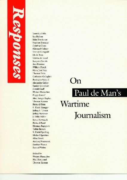 This collection of essays serves as a forum for a broad spectrum of responses to the war-time writing of Paul de Man, responses rarely in agreement and often sharply contradictory, differing in approach, affect, and style. Responses engages in reading de Man's early articles, in articulating their multiple contexts, then and now, and in opening the limitations imposed by rubrics like "the case of Paul de Man" and "deconstruction politics." Responses brings together the readings and commentaries of literary critics and historians from the United States and Europe, with their diverse strategies-historical, rhetorical, psychological, political. The primary aims of these essays are reading de Man's texts, from 1940 to 1983, and assessing them in their political, ideological, and institutional fields.Responses also provides essential historical materials-letters, documents, personal recollections-on Le Soir and Het Vlaamsche Land, on the occupation of Belgium, and on the biography of Paul de Man. An appendix collects the recent reactions of newspapers in the United States and Europe (France, Germany, Switzerland, Sweden, Belgium, and elsewhere) to the discovery of de Man's wartime writings.Contributors include Yves Bonnefoy, Cynthia Chase, Else de Bens, Ortwin de Graef, Jacques Derrida, Rodolphe Gasche, Gerald Graff, Barbara Johnson, Jeffrey Mehlman, J. Hillis Miller, Edward Said, Marc Shell, Gayatri Spivak, and others.The collection appears under the auspices of the Oxford Literary Review, England's leading theoretical journal for over a decade.