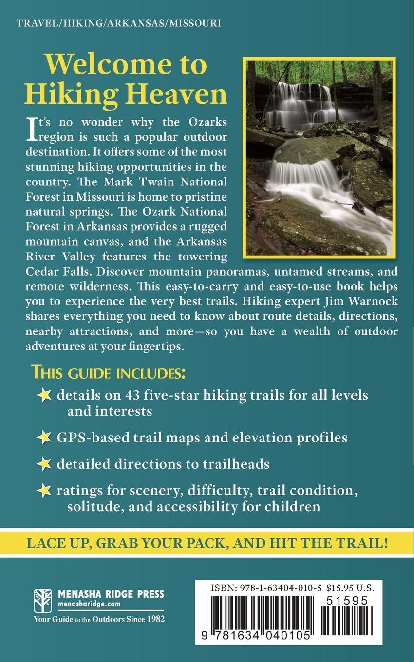 Hiking expert and Ozarks native Jim Warnock introduces 43 of the Ozarks' best hiking trails in Arkansas and Missouri, with information including route details, directions, nearby attractions, GPS-based trail maps, and elevation profiles in this easy-to-carry and easy-to-use guidebook.