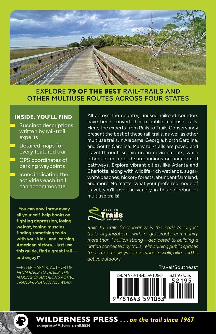 "Explore 81 of the best rail-trails and other multiuse pathways in Alabama, Georgia, North Carolina, and South Carolina. All across the country, unused railroad corridors have been converted into public multiuse trails. Level and accessible, these paths are ideal for a brisk fitness walk, bike ride, or stroll with the family. In Rail-Trails Southeast, the experts from Rails-to-Trails Conservancy present the best of these routes, as well as other multiuse pathways, in Alabama, Georgia, North Carolina, and South Carolina. Many rail-trails are paved and run within view of the most scenic parts of town. Others offer rugged scenery on ungroomed, mostly dirt, and somewhat wild paths"--