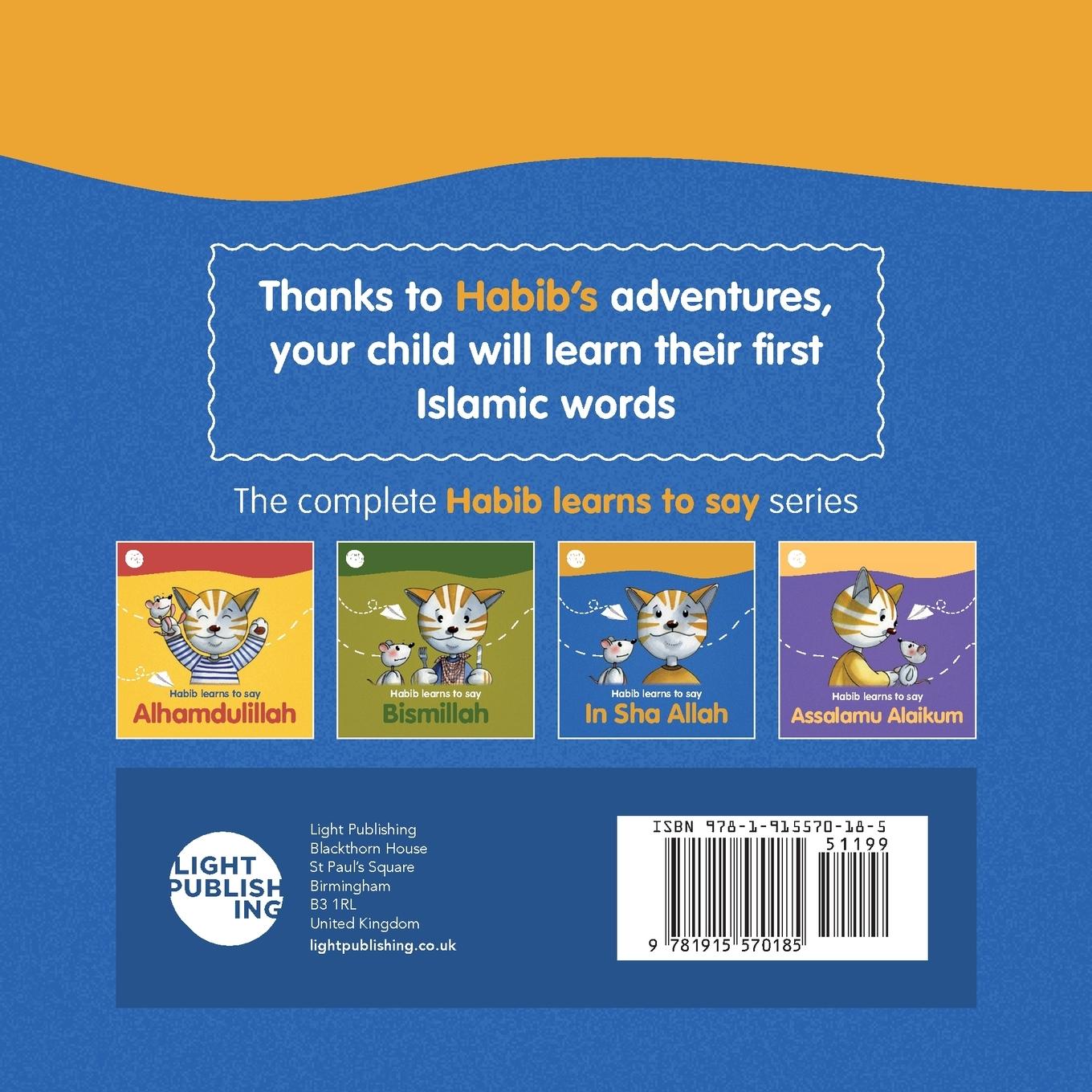 Thanks to Habib's adventures, your child will learn the first Islamic words like Alhamdulilah, Bismillah, In sha Allah and Assalamu Alaikum in this simple and attractive little book. Will they remember to say In Sha Allah, or will they forget? A useful puzzle is added to the end of the book to see if they understood the meaning.