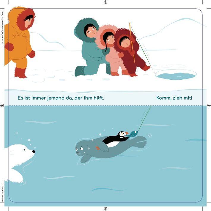 ¿ Ein Buch, das man aus zwei Perspektiven lesen kann: über dem Eis mit dem Jungen und unter dem Eis mit dem kleinen Fisch