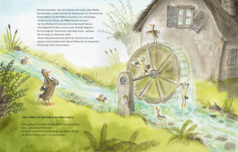 Die Entenmutter flattert nervös auf und ab, denn eines ihrer sieben Küken, ist nicht da! »Vielleicht ist Fedi ja am Wasserfall?«, überlegt Plitsch. Da wird es der Entenmutter angst und bange, denn am Wasserfall ist es gefährlich für Entenküken! Auf der Suche nach Fedi kommt die Familie noch an allerlei gefährlichen Orten vorbei und es wird klar: Hier treiben sich die sieben Küken ständig herum! Mama Ente wird immer blasser, doch nach und nach vertraut sie ihren Kleinen, wenn sie sagen: »Wir sind doch keine Küken mehr!«