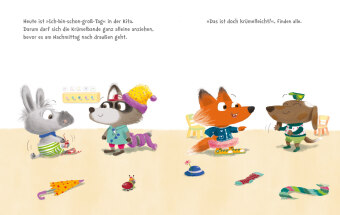 Henry möchte am liebsten alles alleine machen: aussuchen, was er anzieht, seine Jacke zuknöpfen, Schuhe zubinden und noch viel mehr. Doch wenn es morgens vor der Kita zickezacke schnell gehen soll, ist das manchmal gar nicht so einfach. Zum Glück wissen Henry und seine Freunde aus der Krümelbande: üben, üben und noch mal üben - und schon ist Anziehen krümelleicht!