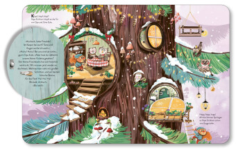 Die kleinen Bewohner der großen Tanne sind mitten in den Vorbereitungen für das Fest. Aber wo steckt das kleine Eichhörnchen Kaspar? Papa Eichhorn macht sich auf die Suche, von der Tannenspitze hinab zu den Baumwurzeln. Ist Kaspar bei seiner Freundin Sara, der Turteltaube? Oder bei Hasenkind Niklas? Die kleinen Leserinnen und Leser können bei der Suche helfen und hinter vielen Klappen lustige Details entdecken.