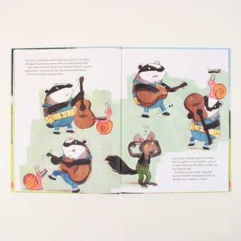 Irgendwo haben Herr Dachs und Schnecke Rakete einen Ohrwurm aufgeschnappt. Den ganzen Tag summen und wippen sie vor sich hin. »Selbst Musik machen müsste man können,« seufzt Herr Dachs sehnsüchtig. Aber so einfach geht das nicht. Dafür muss man komponieren, ein Lied schreiben und sehr viel üben! Oder vielleicht auch nicht? Mit ganzem Körpereinsatz, Dachsens Erfindergeist und Raketes Begeisterung stellen die beiden eine Band zusammen und mischen ihre Hausgemeinschaft mal wieder so richtig auf ...