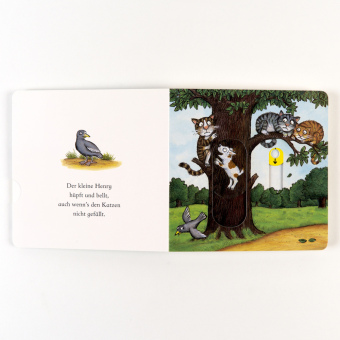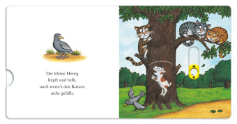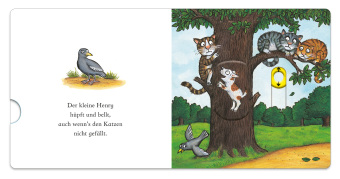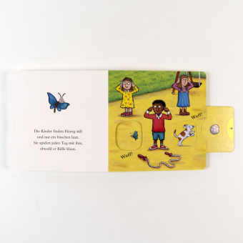 Henry, das Hündchen wühlt, gräbt und bellt, selbst wenn's den Katzen nicht gefällt! Eine vergnügliches Pappbilderbuch von dem Illustrator des Grüffelo mit einfachen und lustigen Versen, in denen kleine Kinder mit dem kleinen Hund bellen können. Mit je vier Elementen zum Schieben und Ziehen.