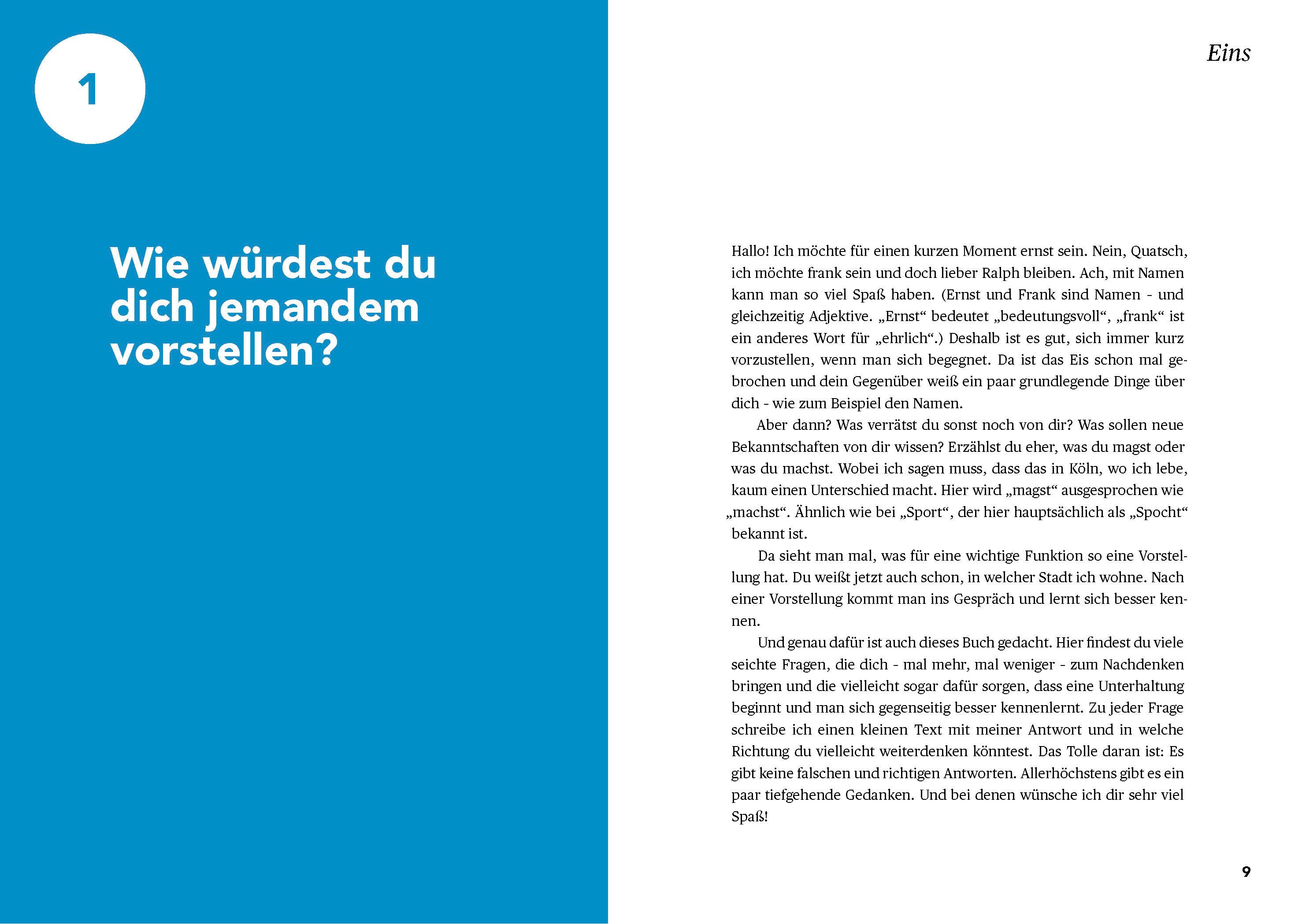 10 seichte Türöffner-Fragen für tiefgründige Unterhaltungen zwischen Eltern und Kindern ab 10 Jahre: - Ja oder nein? - Gibt es Nichts? - Welche geheime Fähigkeit hast du? - Wer hat die allererste Frage gestellt? - Gibt es wirklich keine dummen Fragen? - Können wir entscheiden, was wir denken? - Was denkst du, sagen deine Freunde über dich? - Sollte man aufhören, wenn es am schönsten ist? - Welche Kleinigkeit macht dir eine große Freude? - Welche 3 Dinge wird es in 20 Jahren nicht mehr geben? Und jetzt ihr!Welche Frage beschäftigt euch, oder welche Frage wollt ihr gerne Ralph stellen? Dann schreibt uns eine Nachricht mit #RalphCaspers auf Twitter, Facebook, Instagram oder eine E-Mail an fragralphcaspers@duden.de.