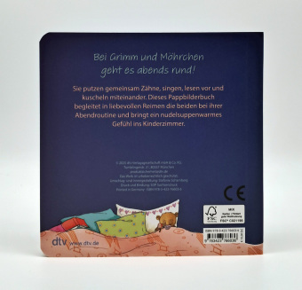 Bei Grimm und Möhrchen wird es abends so richtig gemütlich! Sie putzen gemeinsam Zähne, singen, lesen vor und kuscheln gemeinsam. Dieses Pappbilderbuch begleitet in liebevollen Reimen die beiden bei ihrer Abendroutine und bringt ein suppenwarmes Gefühl ins Kinderzimmer.