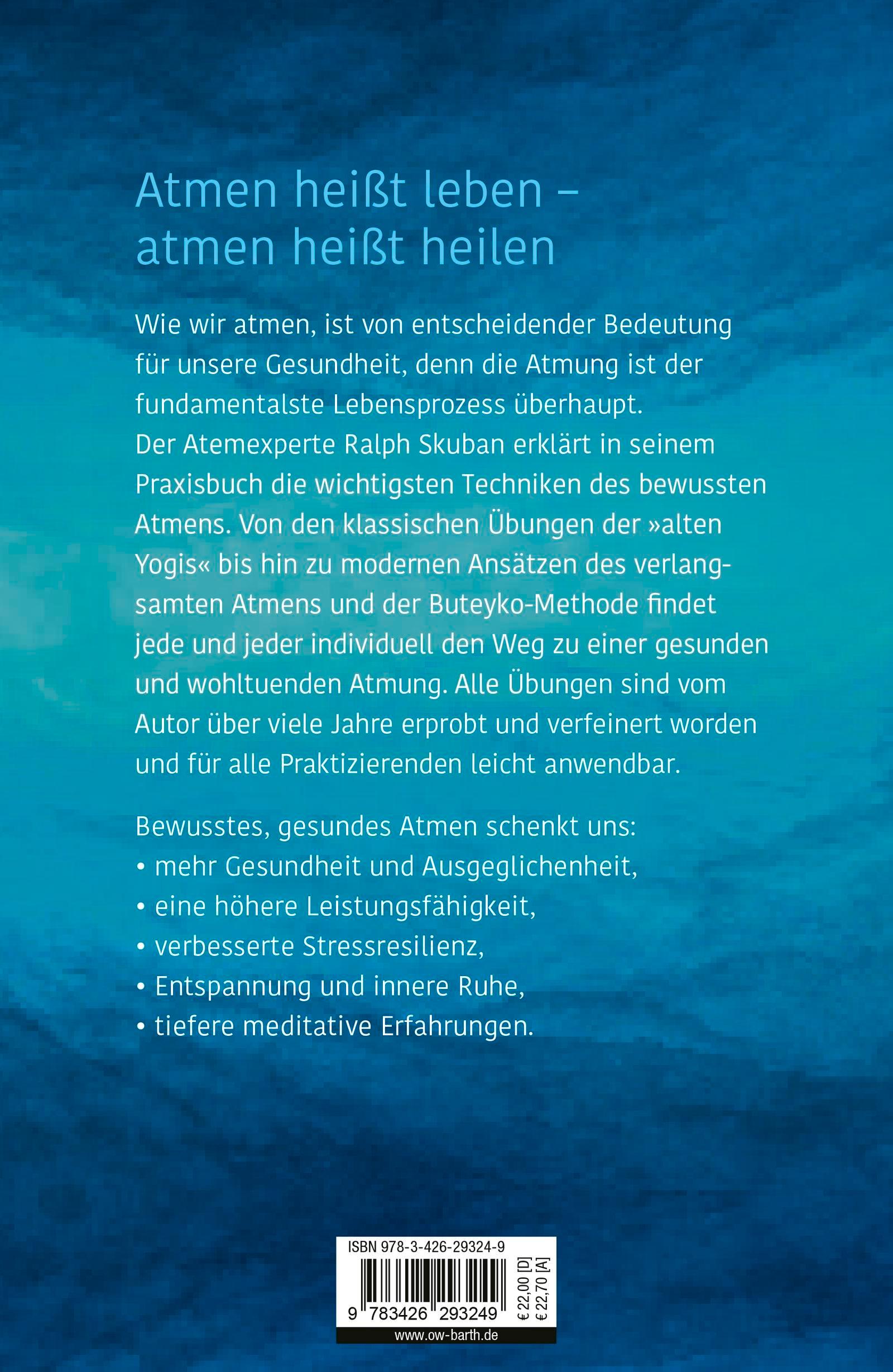 Der Atem-Experte Ralph Skuban erklärt in seinem Ratgeber anschaulich und fundiert die gesundheitlichen und spirituellen Aspekte einer förderlichen Atmung mit zahlreichen individualisierbaren Übungen - die Essenz aus allen relevanten Traditionen in einem Band!Auch schon vor Corona gehörten Atemwegserkrankungen zu den häufigsten Todesursachen der Welt. Viele Menschen haben entsprechende Gesundheitsprobleme oder suchen auch aus Gründen der Entstressung oder aus spirituellen Motiven nach einer zu ihnen passenden Atempraxis. Ralph Skuban bietet mit seinem Praxisbuch eine ganze Palette kombinierbarer Techniken an, die man für sich individuell zusammenstellen kann. Von den Atemübungen der "alten Yogis" bis hin zu moderneren Methoden wie Buteyko findet jede und jeder den Weg zu einer gesunden Atmung, die heilend, entspannend und transformierend wirkt. Alle sind vom Autor über viele Jahre erprobt und verfeinert worden und für alle Praktizierenden verständlich beschrieben und leicht anwendbar.