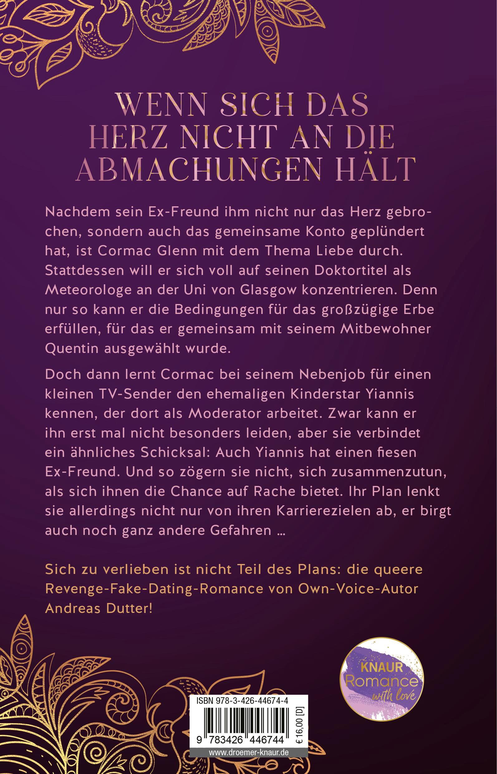 Wenn sich das Herz nicht an die Abmachungen hält In »Never Date Your Enemy«, dem zweiten New-Adult-Liebesroman in Andreas Dutters queerem Duett »Love Studies« , möchte sich der Doktorand Cormac mit Yiannis eigentlich nur an seinem Ex-Freund rächen ... *** LIMITIERTE ERSTAUFLAGE MIT ZWEI WUNDERSCHÖN GESTALTETEN OVERLAY-PAGES *** Sich zu verlieben ist nicht Teil des Plans Nachdem sein Ex-Freund ihm nicht nur das Herz gebrochen, sondern auch das gemeinsame Konto geplündert hat, ist Cormac Glenn mit dem Thema Liebe durch. Stattdessen will er sich voll auf seinen Doktortitel als Meteorologe an der Uni von Glasgow konzentrieren. Denn nur so kann er die Bedingungen für das großzügige Erbe erfüllen, für das er gemeinsam mit seinem Mitbewohner Quentin ausgewählt wurde.Doch dann lernt Cormac bei seinem Nebenjob für einen kleinen TV-Sender den ehemaligen Kinderstar Yiannis kennen, der dort als Moderator arbeitet. Zwar kann er ihn erst mal nicht besonders leiden, aber sie verbindet ein ähnliches Schicksal: Auch Yiannis hat einen fiesen Ex-Freund. Und so zögern sie nicht, sich zusammenzutun, als sich ihnen die Chance auf Rache an ihren hinterhältigen Ex-Freunden bietet. Ihr Plan lenkt sie allerdings nicht nur von ihren Karrierezielen ab, er birgt auch noch ganz andere Gefahren ... Ein bezaubernder queerer Revenge-Fake-Dating-Liebesroman von Own-Voice-Autor Andreas Dutter! Entdecke auch den ersten New-Adult-Roman des Love-Studies-Duetts von Andreas Dutter: In »Love Studies: Never Kiss a Villain« bekommt es Cormacs Mitbewohner Quentin mit Massimo zu tun, der Quentin aus bestimmten Gründen unbedingt für sich gewinnen will ...*** Die Overlay-Pages sind nur in der Erstauflage enthalten. Lieferung nach Verfügbarkeit. ***