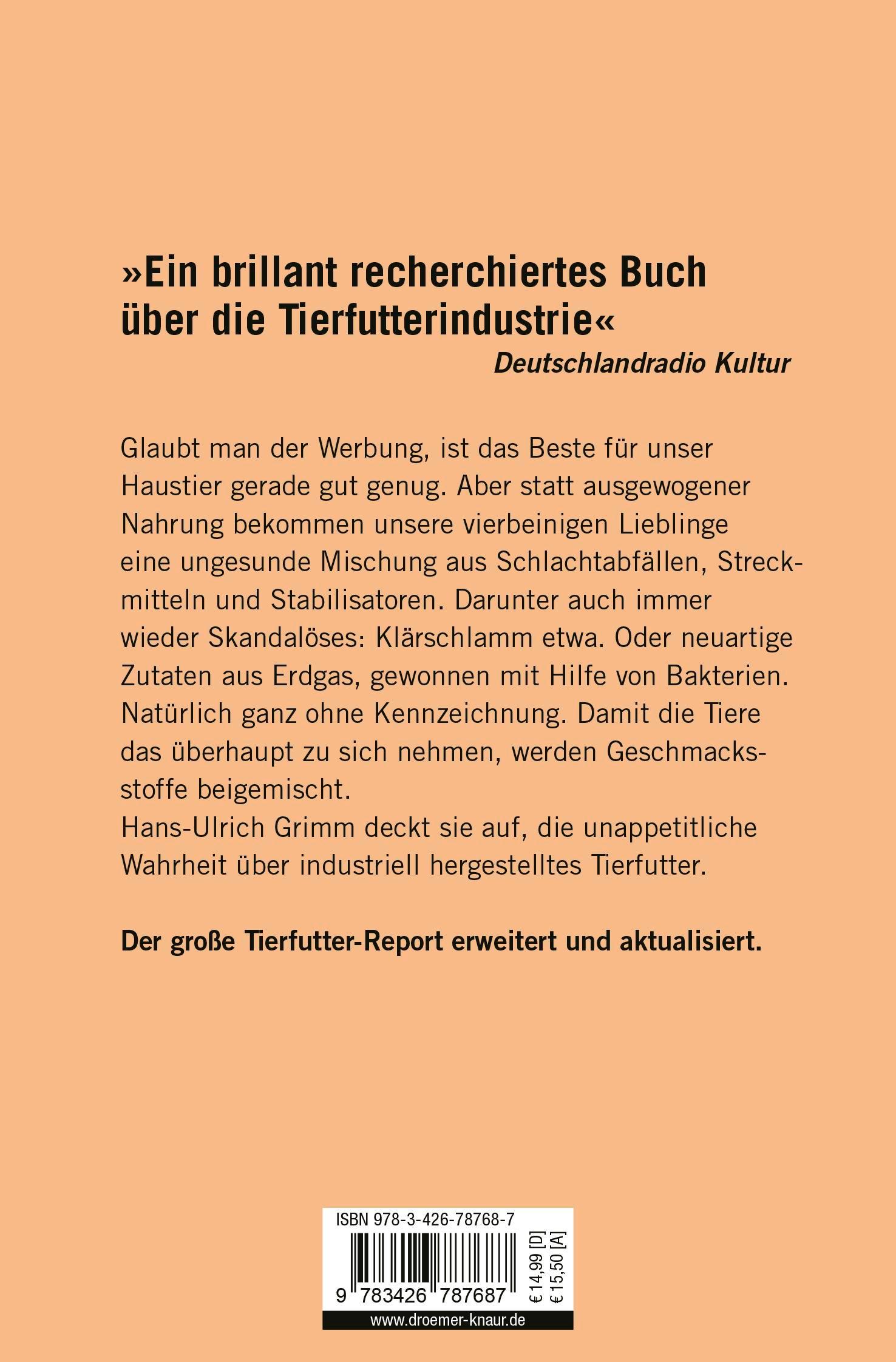 Deutschlands Nahrungsmittelkritiker Nr. 1, Hans-Ulrich Grimm, hat mit »Katzen würden Mäuse kaufen« einen schockierenden Bericht über die Skrupellosigkeit der Tierfutterindustrie verfasst. Denn glaubt man der Werbung, ist das Beste für unser Haustier gerade gut genug. Aber statt ausgewogener Nahrung bekommen unsere vierbeinigen Lieblinge eine ungesunde Mischung aus Schlachtabfällen, Streckmitteln und Stabilisatoren. Darunter auch immer wieder Skandalöses: Klärschlamm etwa. Oder neuartige Ingredienzen aus Erdgas, gewonnen mit Hilfe von Bakterien. Natürlich ganz ohne Kennzeichnung. Damit die Tiere das überhaupt zu sich nehmen, werden Geschmacksstoffe beigemischt. In »Katzen würden Mäuse kaufen« deckt sie Hans-Ulrich Grimm auf, die unappetitliche Wahrheit über kommerzielles Tierfutter.