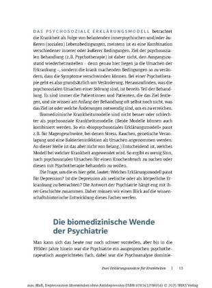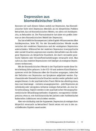 Prof. Dr. Reinhard Maß, leitender Psychologe am Zentrum für Seelische Gesundheit Marienheide (ZSGM) am Klinikum Oberberg, rät aufgrund der aktuellen Forschungslage von der Verwendung von Antidepressiva dringend ab. Er behandelt auf seiner Psychotherapiestation seit Jahren schwer depressive Patienten und hat in mehreren Fachveröffentlichungen gezeigt, dass Antidepressiva dabei überflüssig sind. In diesem Buch
