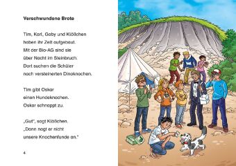 Diebstahl im Steinbruch! Mit Hammer und Pinsel ausgestattet suchen Tim, Karl, Klößchen und Gaby mit ihrer Bio-AG nach Fossilien. Sie erfahren viel über Archäologie und über das Leben der Dinosaurier. Tim findet bei den Ausgrabungen sogar einen perfekt erhaltenen versteinerten Dinosaurier-Knochen. Als dieser verschwindet und weitere seltsame Dinge im Steinbruch und auf dem Zeltplatz geschehen, nehmen TKKG Junior die Ermittlungen auf. Hund Oskar wittert bald eine erste Fährte. Wer ist der dreiste Dieb? In sechs Kapitel erleben Kinder ab der ersten Klasse einen aufregenden Krimi. Mit vielen Illustrationen und einem Rätsel nach jedem Kapitel - eine Bücherhelden-Geschichte für Leseanfänger.
