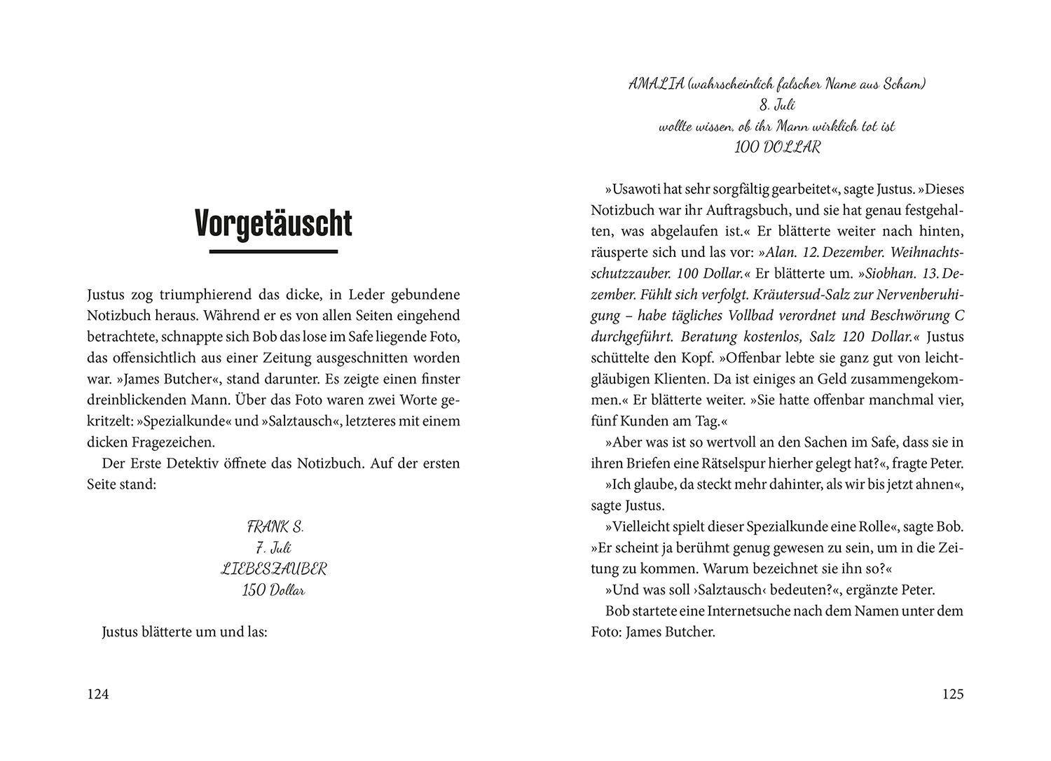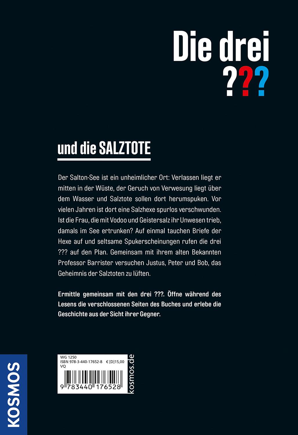 Die drei ??? übernehmen jeden Fall. Niemand weiß, warum die sogenannte Salzhexe vom Salton Sea in Kalifornien vor vielen Jahren plötzlich verschwand. Ist die Frau, die mit Vodoo und Geistersalz ihr Unwesen trieb, damals im See ertrunken? Nun tauchen Briefe der Hexe auf und seltsame Spukerscheinungen rufen die drei ??? auf den Plan. Gemeinsam mit ihrem alten Bekannten Professor Barrister versuchen die Detektive, das Geheimnis der Salztoten zu lüften.Die Wahrheit steht auf verschlossenen Seiten. Die Seiten während des Lesens nach und nach öffnen und mehr erfahren. Ultra-spannend: Jetzt kommen auch die Gegner der drei ??? zu Wort.
