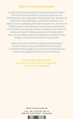 en - so wie auch Polly Flint, Robinsons Tochter, Defoes Roman wieder und wieder liest." Katrin Krämer, SWR2 Lesenswert, 08.11.20 "Ein Roman über eine sehr erstaunliche Frau ... Wirklich eine große Empfehlung." Dorothee Meyer-Kahrweg, hr2 Kultur, 20.10.20 "Die leichthändig erzählte Story einer frühen weiblichen Emanzipation mittels Literatur." Sigrid Löffler, Deutschlandfunk Kultur, 06.10.20 "Gardam ist eine großartige Beobachterin. Auch die Kunst des humorvollen Understatements kultiviert die Britin bereits in diesem Frühwerk. ... Mit Polly Flint hat sie eine starke Frauenfigur geschaffen." Franziska Wolffheim, Tagesspiegel, 01.10.20 "Wundervolle Beschreibungen und Charaktere mit Dickens'schen Qualitäten. ... Die Tiefenschärfe des Buches ist faszinierend: eine Poetik des Romans, das 20. Jahrhundert mit seinen Kriegen und dem Holocaust - und eine Frauengestalt, die im Gedächtnis bleibt: Polly Flint ... Es wäre schade, sie nicht kennenzulernen." Anna Hartwich, NDR Kultur, 11.09