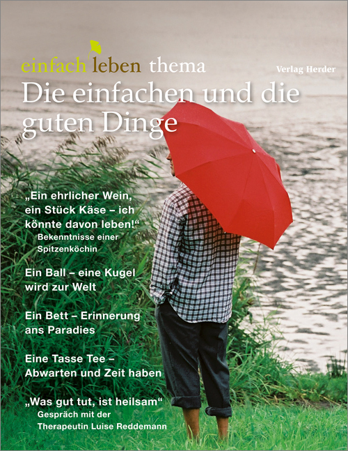 Jeden Tag das Neue und immer wieder etwas Besonderes oder gar das vorher Noch-nie-Dagewesene: das halten wir auf die Dauer nicht aus. Wir sehnen uns nach Dingen, mit denen wir leben wollen, uns einfach wohlfühlen - die einfach sind und gut. Das neue Themenheft von "einfach leben": Konkrete Beispiele aus dem Alltag und dem Miteinander - einfache Dinge, die das Leben schöner machen. Mit exzellenten Fotos von Tristan Vankann.Originaltexte u.a. von Wolfgang Schmidbauer, Henning Scherf, Bernhard Pötter, Margit Irgang, Friedrich Schorlemmer, Luise Reddemann, Karlheinz Geißler, Sarah Wiener, Anselm Grün.