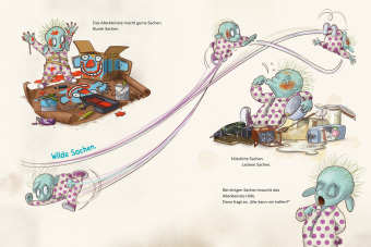 Das Allerkleinste macht gerne Sachen. Bunte Sachen und wilde Sachen. Nützliche Sachen und leckere. Bei manchen Sachen braucht es Hilfe. Dann stehen sofort alle bereit: Die Mama hilft, der Papa hilft, die Oma, der Opa, die Tante, der Onkel ... Manchmal ist so eine überaus hilfsbereite Familie aber auch ziemlich nervig. Dann nämlich, wenn das Allerkleinste GANZ ALLEINE Sachen machen will. Tief in sich drin weiß das Allerkleinste, dass es ziemlich viel könnte, wenn es nur dürfte. Zum Glück hat es seinen Freund, das Knuseltier, an der Seite, der ihm hilft, sich gegen allzu viel gut gemeinte Hilfe zu wehren.