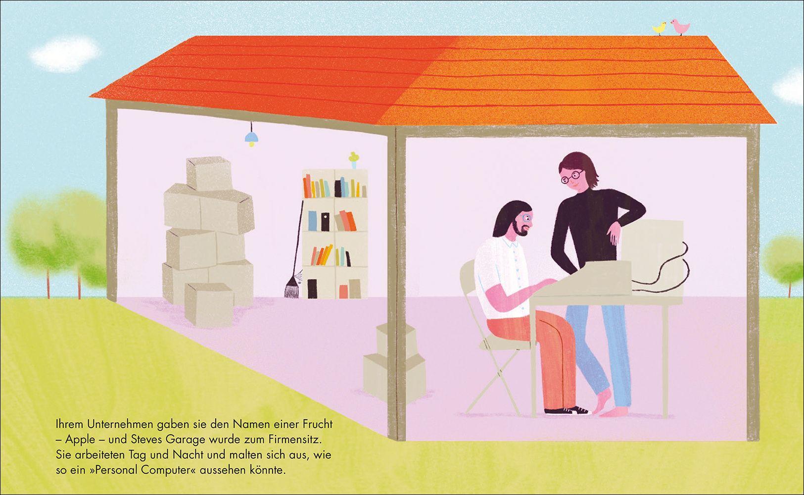 Eines Tages kehrte der junge Steve von einem Summer-Camp für neugierige Kids nach Hause zurück. Er hatte da eine riesengroße, geheimnisvolle Maschine gesehen: den ersten Computer. Wenige Jahre später gründete er mit seinem Freund eine Firma, die Garage von Steves Familie wurde zum Headquarter. Dort entstand der erste Apple. Heute blinkt das Äpfelchen überall auf der Welt. Einige Geräte sind so klein, dass man sie sogar in die Jackentasche stecken kann. Little People, Big Dreams erzählt von den beeindruckenden Lebensgeschichten großer Menschen: Jede dieser Persönlichkeiten, ob Philosophin, Forscherin oder Sportler, hat Unvorstellbares erreicht. Dabei begann alles, als sie noch klein waren: mit großen Träumen.