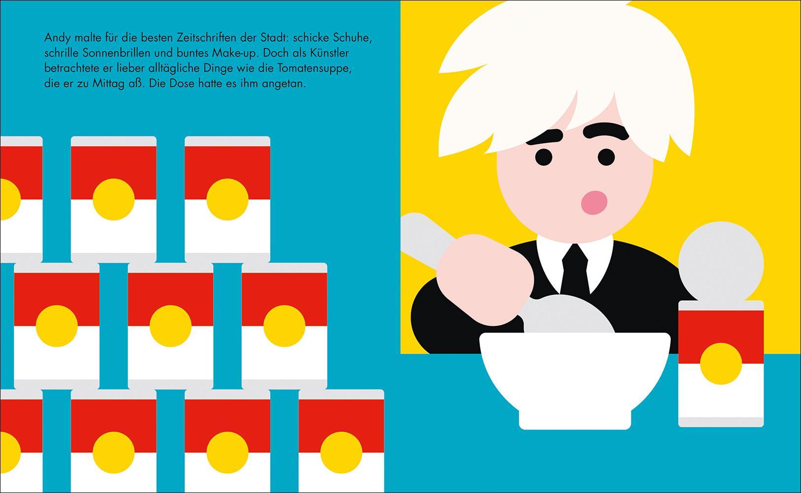 Mit acht Jahren wurde Andy Warhol, der schon immer etwas bleicher aussah als alle anderen, sehr krank. Die lange Zeit im Bett vertrieb er sich mit Comicheften und er begann zu malen, aus Zeitungen schnitt er Fotos von Hollywoodstars und Gebrauchsgegenständen aus. Seine Kunstwerke zeigten häufig die alltäglichsten Dinge. Nicht allen gefiel das. Was für ein Künstler soll das sein, der die Dose einer Tomatensuppe gleich 32-mal auf dieselbe Leinwand malt. Heute ist Andy Warhol der erfolgreichste und bekannteste Pop-Art-Künstler seiner Zeit, weil er aus Alltäglichem Kunst gemacht hat. Little People, Big Dreams erzählt von den beeindruckenden Lebensgeschichten großer Menschen: Jede dieser Persönlichkeiten, ob Philosophin, Forscherin oder Sportler, hat Unvorstellbares erreicht. Dabei begann alles, als sie noch klein waren: mit großen Träumen.