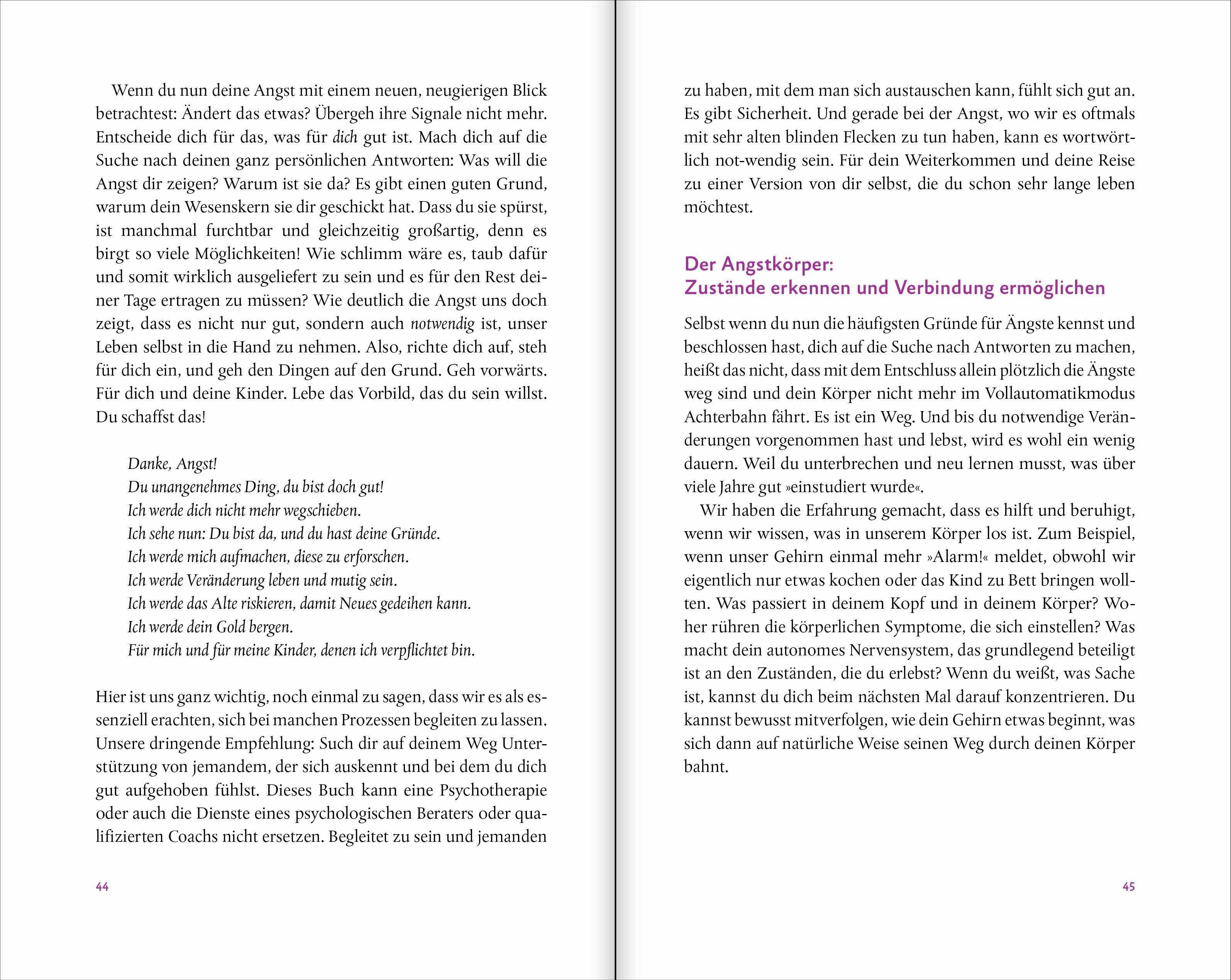 Die Gefühle hinter dem Stress erkennen»Deine Kinder brauchen dich als aufrichtige Erwachsene. Auch und gerade dann, wenn es schwierig wird!«Im Alltag mit Kindern begegnen Eltern vielfältige Angstsituationen. Angst vor Verletzungen, vor Fehlern, vor der Zukunft. Um diese gut zu bewältigen, geben die Bestsellerautorinnen Jeannine Mik und Sandra Teml-Jetter in ihrem Buch Reflexionsimpulse sowie Soforthilfen für den Umgang mit Furcht und Panik an die Hand.So können Eltern erkennen, dass sie mit diesen Herausforderungen nicht alleine sind und lernen:.das eigene Handeln und Erziehen zu reflektieren,.Ängste als Ratgeber zu betrachten,.die eigenen Gefühle und die der anderen nicht zu verleugnen,.ein selbstbewusstes Standing im Hier und Jetzt einzunehmen.Die Autorinnen zeigen, dass wir nur die Eltern sein können, die wir wirklich sein wollen, wenn wir wissen, welche Gedanken, Zweifel und inneren Einstellungen uns und unsere Art zu erziehen leiten. Sie ermöglichen einen neuen Blick auf Elternsorgen, der zeigt, wie die eigenen Lebenserfahrungen uns prägen und in welchem Zusammenhang negative Gefühle und Erziehungsstile stehen. So kann es gelingen, trotz der Angst klar zu handeln und Kinder achtsam zu begleiten.