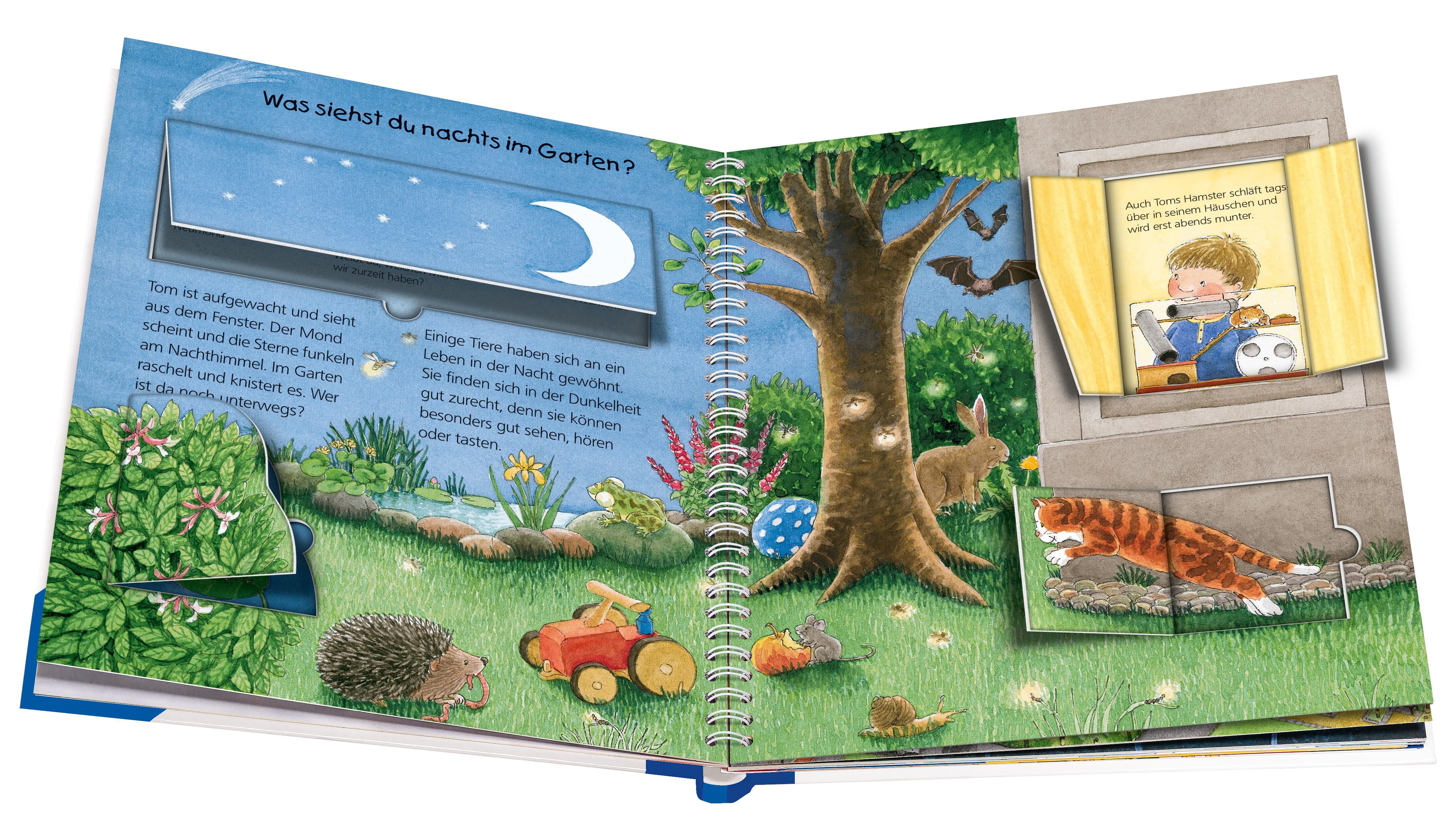 Kaum ein Kind geht gern ins Bett, und doch müssen wir alle schlafen - aber warum eigentlich? Dieses Buch nimmt die Kinder mit auf eine einfühlsame Reise durch die Nacht und beantwortet mit liebevollen Illustrationen und vielen Klappen allerlei Kinderfragen: Was passiert, wenn wir schlafen? Wieso kann man in der Dunkelheit nicht gut sehen? Wie und zu welcher Tageszeit schlafen Tiere? Die Kleinen erfahren auch, welche Menschen nachts wach sind, etwa weil sie arbeiten müssen. Und wann ist die Nacht eigentlich vorbei?