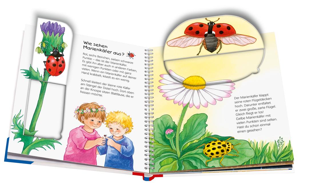 Im Garten, auf der Wiese, im Wald - überall kriecht und krabbelt es! Mit naturgetreuen Bildern und spannenden Klappen entdecken Kinder hier die interessantesten Insekten, Spinnentiere und Schnecken aus nächster Nähe. Kurze Sachtexte erklären, was es rund um die kleinen Kriech- und Krabbeltiere zu wissen gibt: Wo verkriechen sich Regenwürmer und was hat eine Raupe mit einem Schmetterling zu tun? Öffne die Klappe und finde raus, wer sich in der Mohnblüte versteckt!