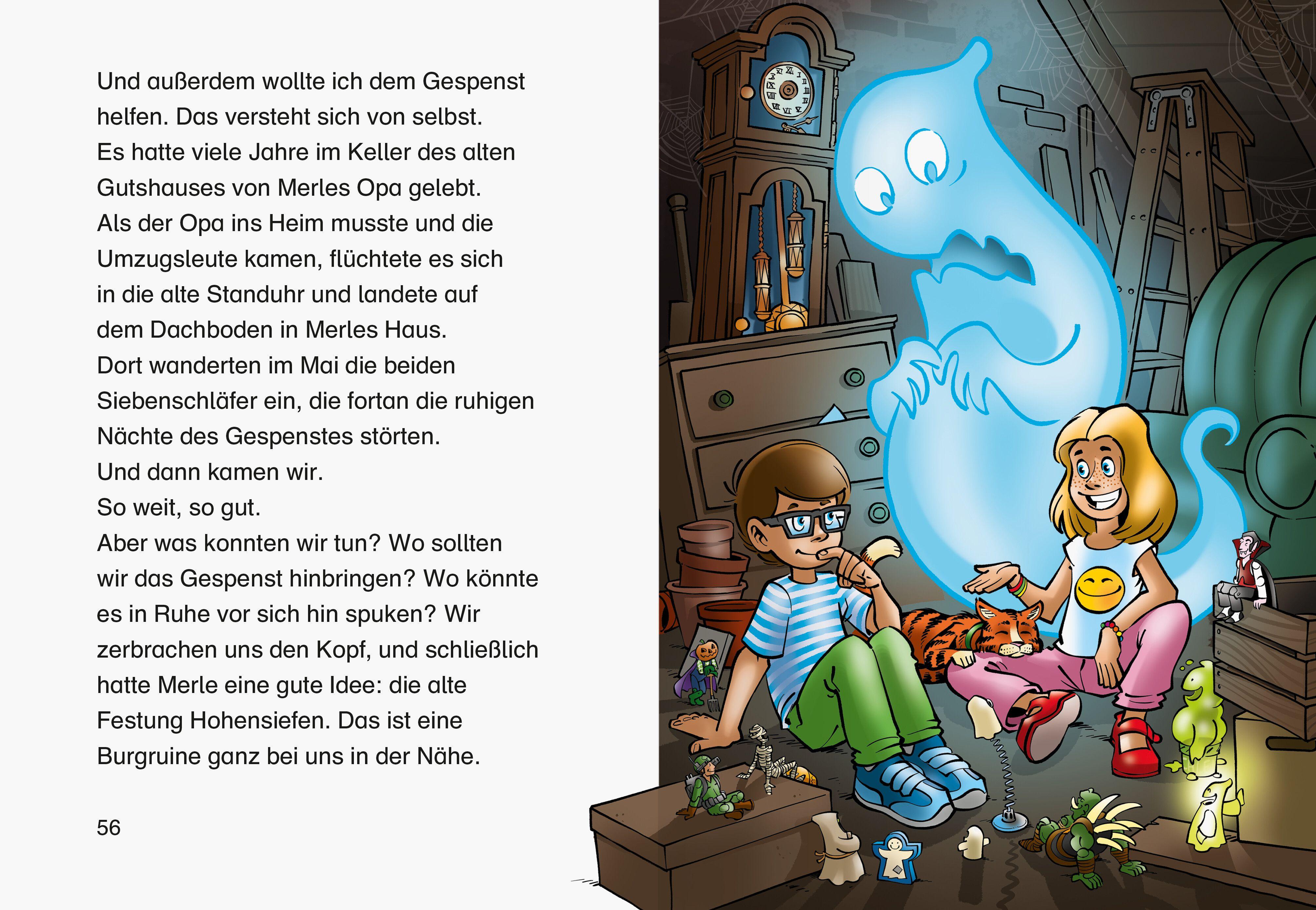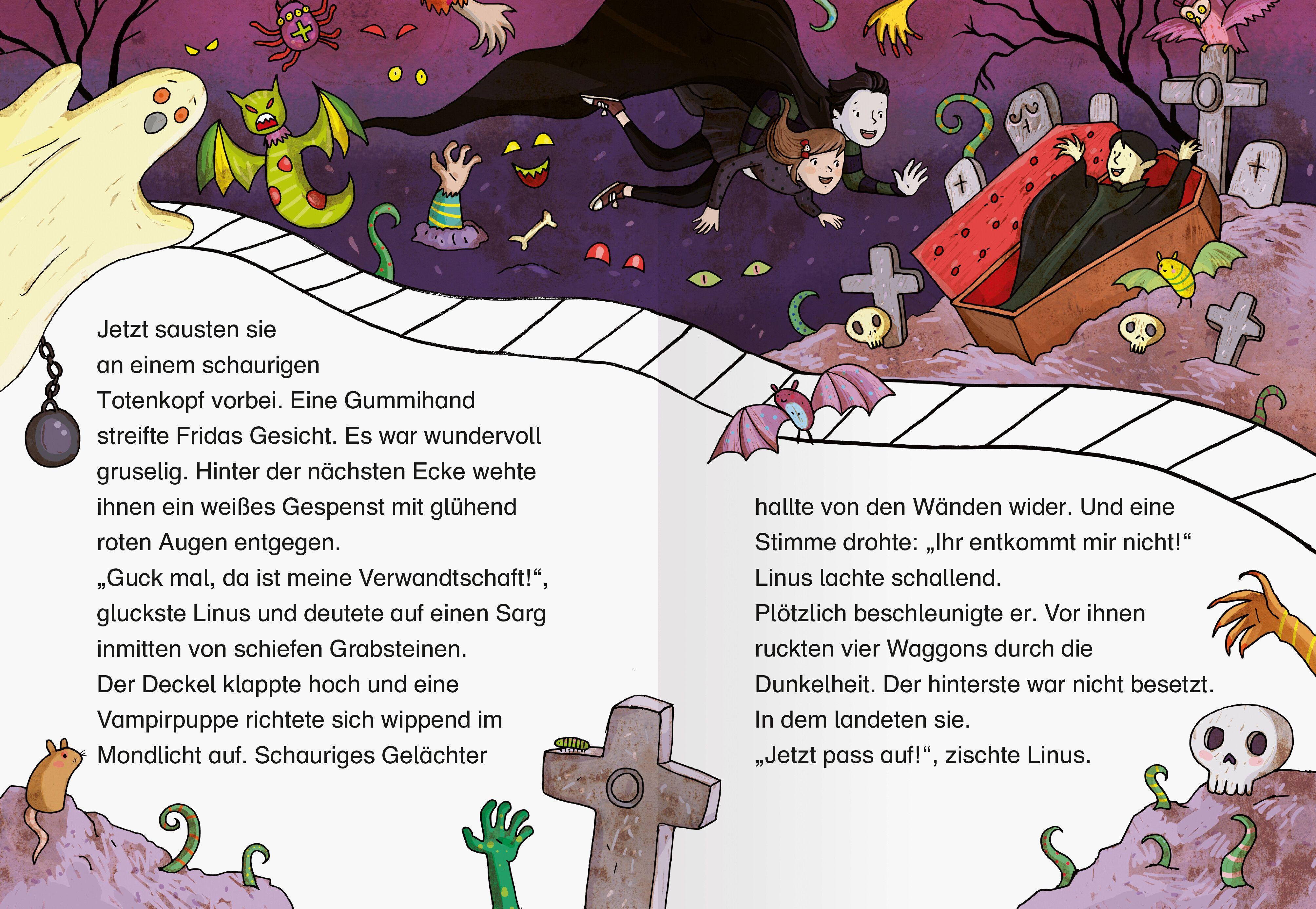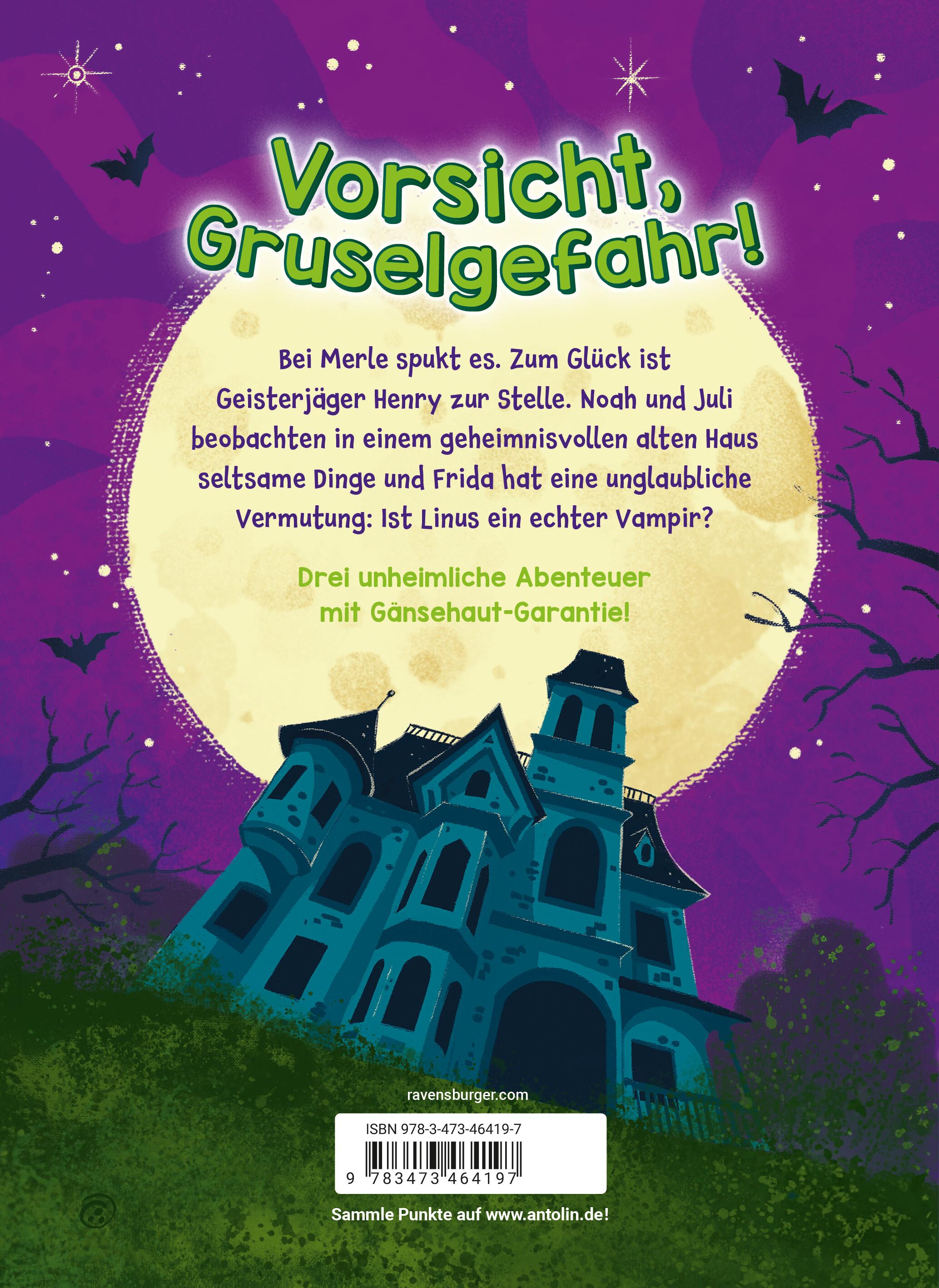 Lesen lernen wie im Flug!Vorsicht, Gruselgefahr! Bei Merle spukt es. Zum Glück ist Geisterjäger Henry zur Stelle. Noah und Juli beobachten in einem geheimnisvollen alten Haus seltsame Dinge und Frida hat eine unglaubliche Vermutung ... Ist Linus ein echter Vampir?Drei unheimliche Abenteuer mit Gänsehaut-Garantie! Lesenlernen mit Gruselgeschichten! Diese drei unheimlichen Gruselabenteuer sind für fortgeschrittene Erstleser ab Klasse 2 konzipiert. Einfacher Satzbau, viele textunterstützende Bilder und lesefreundliche Schrift garantieren raschen Leseerfolg für angehende Leseprofis!