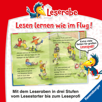 Lesen lernen mit dem Ravensburger Leseraben. Die 1. Lesestufe spricht Kinder an, die mit dem Leselern-Prozess begonnen haben, und bietet ideale Bücher für Leseanfänger. Kurze Textabschnitte, einfacher Wortschatz sowie die extragroße Fibelschrift erleichtern Kindern das Lesen. Leserätsel für Leseanfänger und spannende Geschichten machen das Lesenlernen zu einem echten Vergnügen.