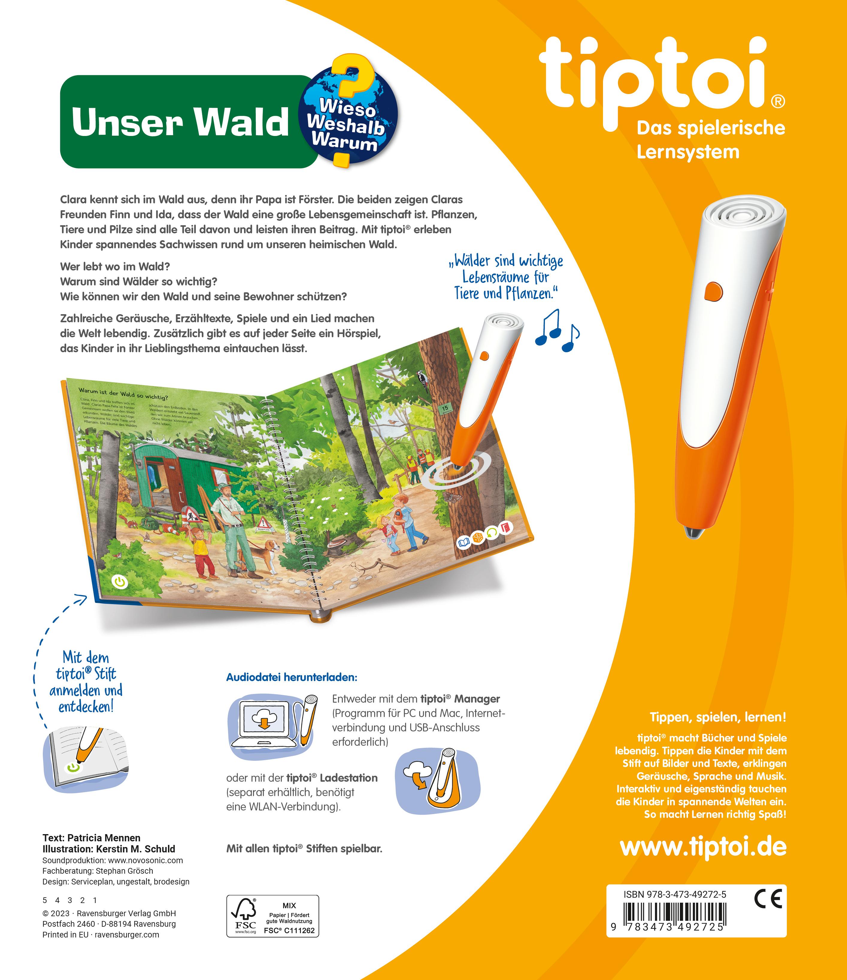 Gemeinsam mit Clara, Finn, Ida und Förster Felix erkunden die Kinder den Wald und seine Bewohner: Bäume, Tiere, Pilze, Moose - sie alle sind Teil dieser Lebensgemeinschaft. Wer lebt eigentlich wo im Wald? Und wofür ist der Wald gut? Wie können wir ihn schützen? tiptoi® beantwortet Kinderfragen auf Augenhöhe. Ein Buch, das Kindern Wissen über den heimischen Wald vermittelt und für dessen Schutz sensibilisiert.