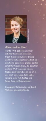 Alexandra Flint wurde 1996 geboren und lebt mit ihrer Familie in München. Nach ihrem Studium der Elektro- und Informationstechnik widmet sie sich heute ganz ihrer großen Leidenschaft für Geschichten, die berühren und die Welt vergessen lassen. Neben dem Schreiben ist sie oft in der Welt unterwegs, liebt Liebesromane jeder Art, Kaffee und lange Tage mit Freund:innen. Instagram: @alexandraflint.autorin Website: alexandraflint.de
