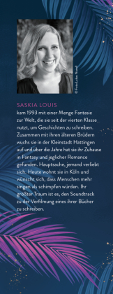 Saskia Louis kam 1993 mit einer Menge Fantasie zur Welt, die sie seit der vierten Klasse nutzt, um Geschichten zu schreiben. Zusammen mit ihren älteren Brüdern wuchs sie in der Kleinstadt Hattingen auf und über die Jahre hat sie ihr Zuhause in Fantasy und jeglicher Romance gefunden. Hauptsache, jemand verliebt sich. Heute wohnt sie in Köln und wünscht sich, dass Menschen mehr singen als schimpfen würden. Ihr größter Traum ist es, den Soundtrack zu der Verfilmung eines ihrer Bücher zu schreiben.