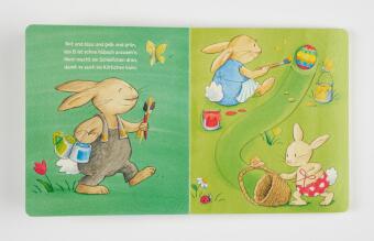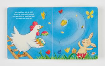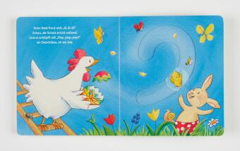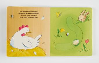 Einmal ein richtiger Osterhase sein? Mit dem Finger kann das Schiebe-Ei auf jeder Doppelseite ganz einfach hin und herbewegt werden. So können die Allerkleinsten Osterhäschen Henri helfen, das Ei von Heidi Huhn zu bemalen und es ganz vorsichtig ins Nest zu legen. Und am Ende schlüpft das niedliche Osterküken!