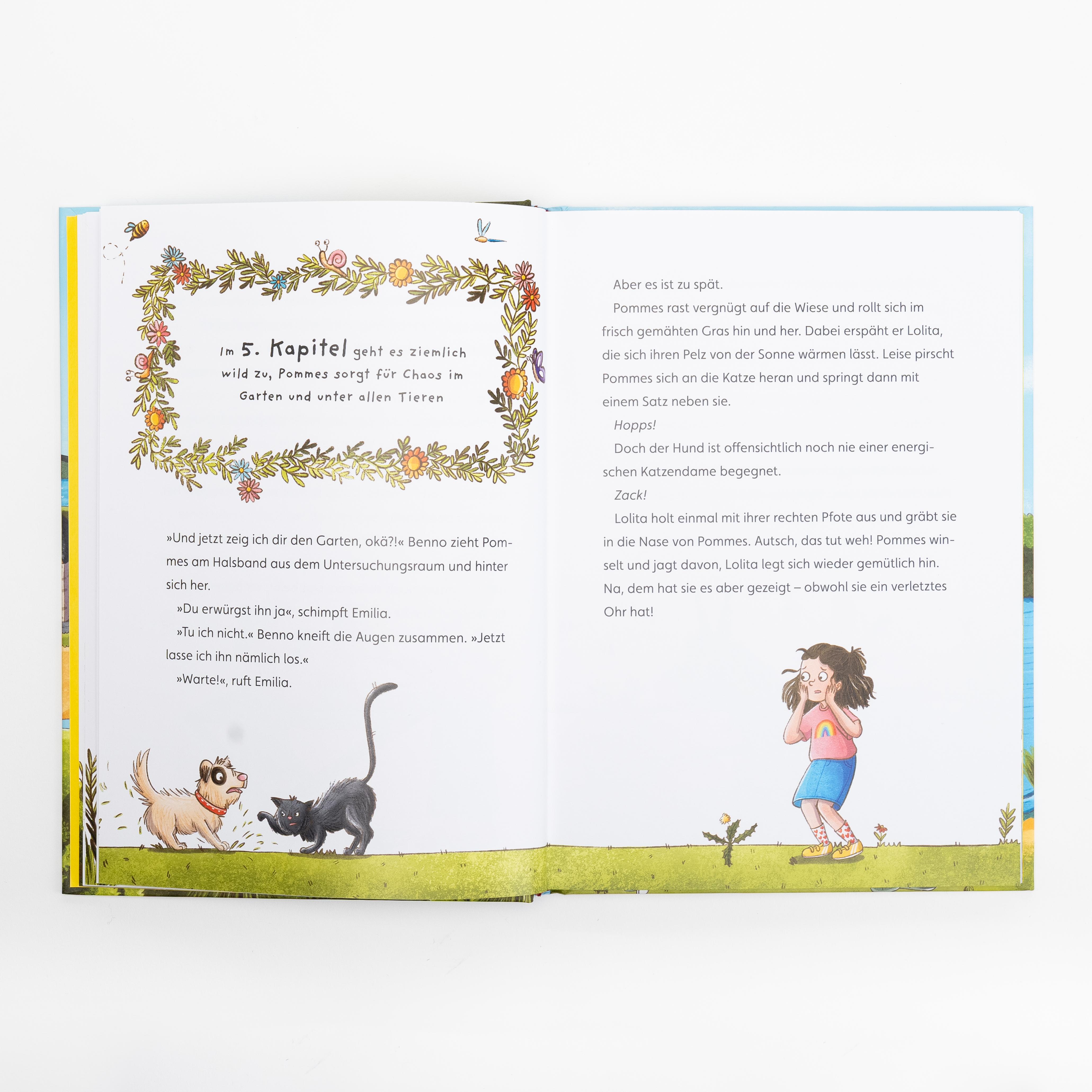 Kinder auf Abenteuermission: Hier kommen die Tierretter! In dem kleinen Ort Birkby, umgeben von sanften Hügeln, Wiesen, Feldern und einem sich gemächlich dahinschlängelnden Fluss, leben Jette, Emilia und Benno. Als sie eines Tages am Kiosk der Roten Berta einen zurückgelassenen Hund entdecken, ist den Kindern klar: Hier müssen sie helfen! Kurzerhand taufen sie den Hund auf den Namen Pommes (ohne Mayo) und ringen ihren Eltern die Erlaubnis ab, auf ihn aufpassen zu dürfen, bis Pommes' Besitzer gefunden ist. Mit Feuereifer machen sich die Tierretter daran, ein altes Fischerhäuschen am Fluss auf Vordermann zu bringen, wo Pommes ein gemütliches Zuhause finden soll. Auch Paul, der neu in den Ort gezogen ist, ist mit von der Partie, was Jette zu Anfang gar nicht passt. Pommes und ihre beste Freundin Emilia mit Paul teilen? Niemals! Doch als sich ein Mann meldet, der auf der Suche nach seinem Hund ist, und Benno beschließt, mit Pommes auszureißen, halten alle fest zusammen!