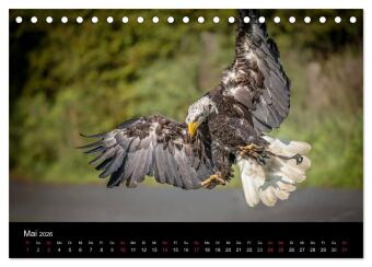 Die Weihen drehen Loopings, die kleinen Falken stehen rüttelnd in der Luft, die Adler sind in solchen Höhen, daß wir sie mit unseren Augen kaum mehr erblicken können.Die Fischadler schlagen ihre Beute im Wasser und tragen sie davon.Alle zusammen sind sie Symbol für Mut, Kraft und Stärke - sowie Weisheit, Schönheit und Eleganz.Diese Eigenschaften sollen die Bilder in diesem Kalender wiederspiegeln.