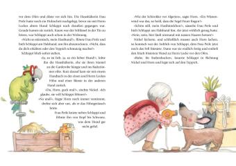 O Schreck! Frau Perle ist verschwunden! Nickel und Horn sind fest entschlossen, den Fall zu übernehmen - auch Schlappi will bei der Suche nach seiner geliebten Frau Perle nicht fehlen. Eine rasante Spurensuche führt sie durch die verregneten Straßen der Stadt. Sie erkunden die Umgebung und befragen Zeugen: Bindi, den Wellensittich aus dem Asiamarkt, die eingebildete Yorkshire-Terrier-Dame Lazy, die aus dem Zoo geflüchteten Mandarin-Enten, die Frau Perle von früher kennen. Doch überall lauern Gefahren und Nickel und Horn müssen mal wieder all ihren Mut zusammennehmen, um es mit ihnen aufzunehmen. Zum Glück finden sie Frau Perle: Mitten im verschneiten Stadtpark.