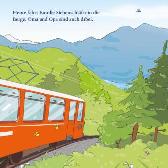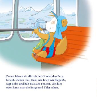 Bobo reist mit der ganzen Familie in die Berge. Er füttert die Kühe auf der Weide, badet im Gebirgsbach, spielt auf der Alm mit den Ziegen und schläft auf Opas Schultern ein.