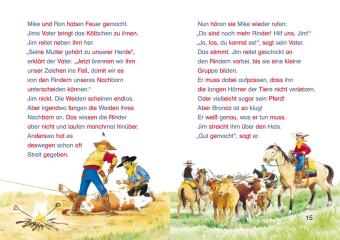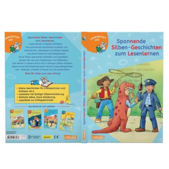Dieser Band enthält gleich drei spannende Abenteuergeschichten für kleine Leseanfänger_innen: »Abenteuer im Wilden Westen«, »Dreihorn, der kleine Dinosaurier« und »Ein Fall für die Polizei«. Alle Wörter sind in farbigen Buchstaben markiert. Diese kurzen Buchstabengruppen können Erstleser_innen schneller erfassen als das ganze Wort.